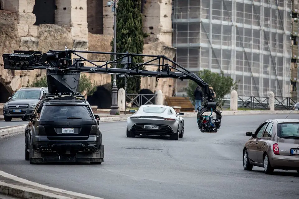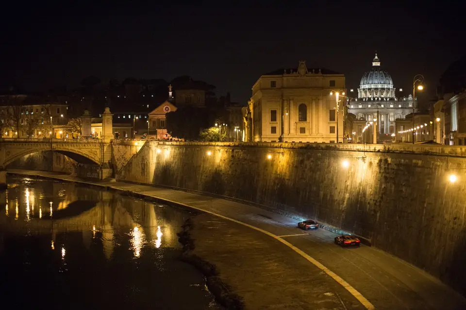 After a spell in Mexico City during the procession of skeletons on Dia de los Muertos, and in London at headquarters, the 24th James Bond film stops off in Rome before continuing its tour around the rest of the world, with sites of relevance including the Colosseum, Porta Pia, Borgo Pio, and St. Peter’s: monument after monument, we see the city flash by at 160km/h during a fast-paced car chase involving an Aston Martin and a Jaguar. The chase passes by via Nomentana and ends with Bond’s car plunging into the river Tiber, while our hero, picture-perfect and without a scratch, parachutes down onto the riverbank.