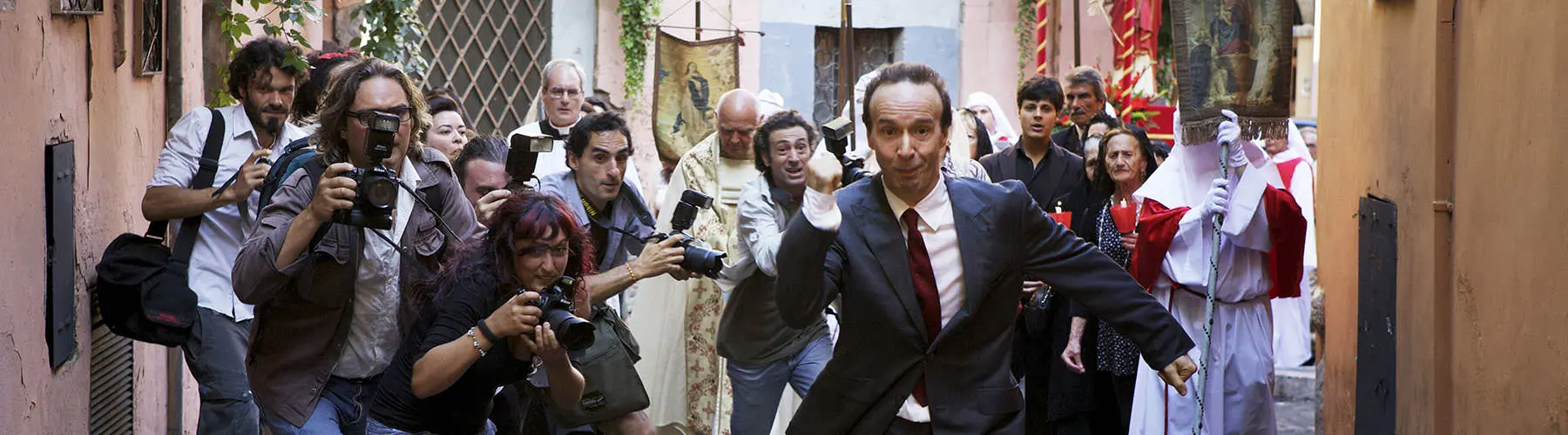 Leopoldo (Roberto Benigni) is a citizen like any other. His family, colleagues and friends take little notice of him and it seems like his opinion doesn’t matter to anyone, not even when he comments on the film he’s just seen upon leaving the Farnese cinema in Campo de’ Fiori. When he suddenly becomes popular, without knowing why, people start inviting him to elite events. One such event is a film premiere at The Space cinema in piazza della Repubblica, which he attends with his wife: we see the Naiadi fountain behind them as they walk the red carpet. Then there’s a fashion show at the Ara Pacis, where women battle it out to be seen by his side. Hounded by the paparazzi, he is caught leaving a restaurant in piazza Santa Maria in Trastevere with one of them. He escapes with his driver, looking for some peace and quiet, and ends up in the Oppian Hill Park. The paparazzi lose interest in Leopoldo when they find a bus driver who looks more interesting, on via della Vite. Having faded back into anonymity, Leopoldo strolls along via Veneto with his wife, but it’s hard for him to readjust to normal life.