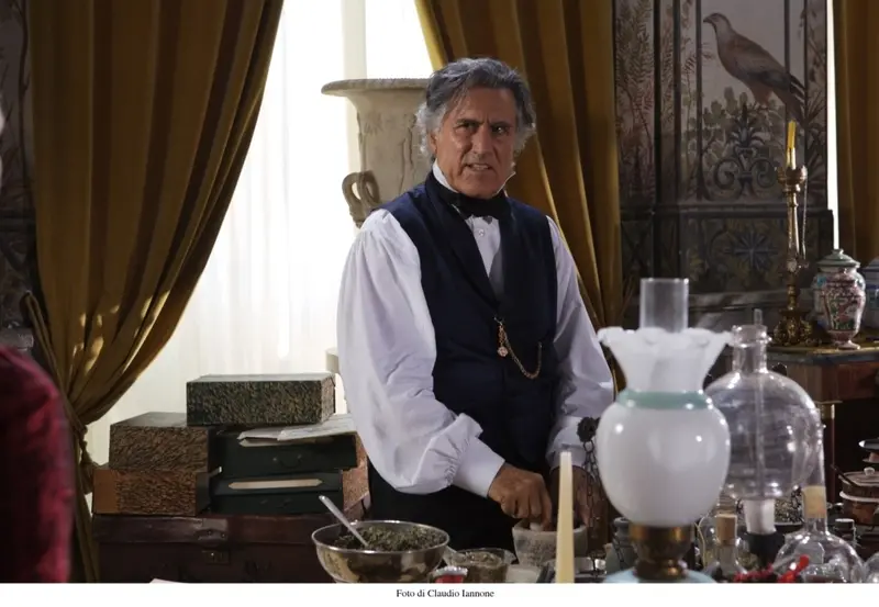 The years go by and Garibaldi’s army arrives in Catania. Consalvo and Giovannino, now young adults, celebrate their rediscovered freedom in the centre of the city. Prince Uzeda is meanwhile becoming increasingly superstitious: he spends most of his time concocting brews and practising sorcery against bad luck, locked away in his well-equipped apothecary’s workshop in the Summer Dining Room of Palazzo Chigi in Ariccia, and organises exorcisms of evil in the Billiards Room of Donnafugata Castle. It is in the same room that the Prince announces his second marriage to his cousin Graziella.