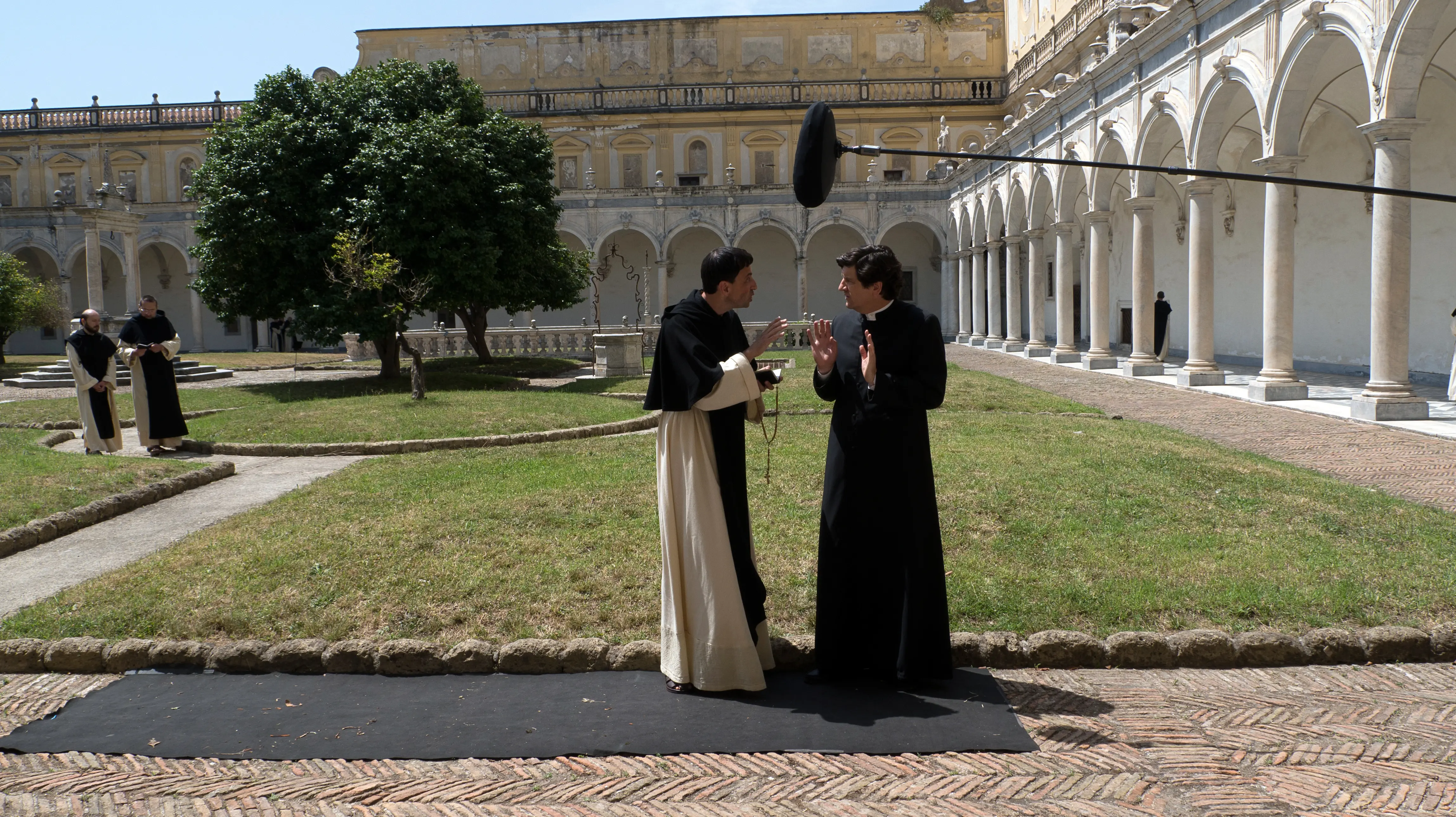 The church of San Tommaso, which Germano is the parish priest of, is actually the church of Minuta a Scala (SA) on the Amalfi coast. Other coastal towns that were used for filming include Amalfi, Atrani, Ravello, and Conca dei Marini, which is home to the Saracenic tower that Fulvio observes and mentions upon returning from his trip to the sea, and Furore, the main feature of which that we see is the splendid fjord when Fulvio returns from his trip, when the cardinals appointed by the Vatican arrive and when the statue of San Tommaso is moved following a failed attempt at theft.