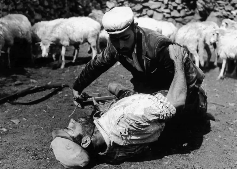 Michele, a shepherd of Orgosolo unfairly charged with rustling and murder, is forced to take to the hills. In his flight into the inaccessible areas of Barbagia, where there is neither water nor pastures, he loses every sheep in his flock. One night, desperate because he is full of debts, and with impending trials up ahead, he goes into the sheepfold of another shepherd and, at gunpoint, steals every sheep. Michele has become a bandit.