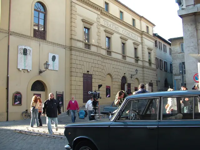 Another stop on the tour is Narni (TN), where the singer-songwriter actually studied as a young man. Here, in Madonna Scoperta, Rino and his band stop off to eat at the restaurant of a service station, which was reconstructed at the turning point in the road for Borgheria. The daughter of the manager, Chiara, who works as a waitress there, is a fan of Rino’s and knows all his songs. She helps them to run away without paying and goes with them. In the centre of Narni, in front of the theatre where he performs with his band, Rino bumps into a strange person, who inspires Nuntereggae più.