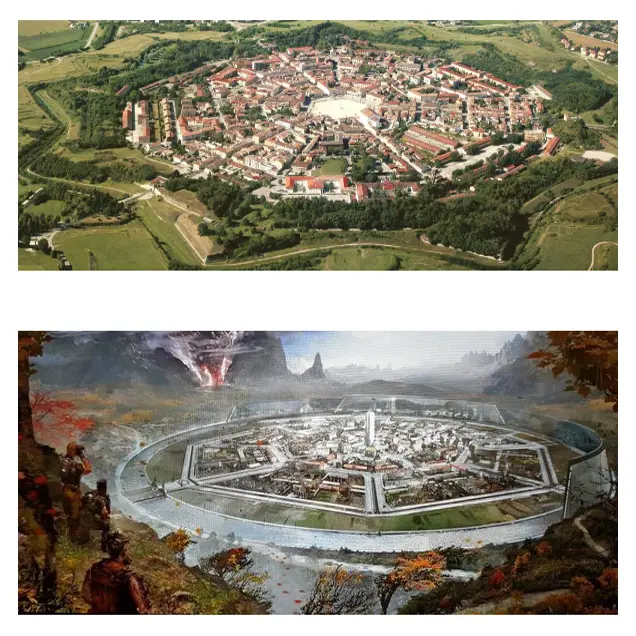 The game is not set in Italy. Nonetheless, the producer, Rod Fergusson, “told Game Informer that they were inspired by certain specific locations in Northern Italy for the design of the locations on Sera that we see in Gears of War 4, in particular the area of the Dolomites, the fortress city of Palmanova in the province of Udine, and the Fort of Fenestrelle. The development team decided to do a research trip to Italy and to completely embrace this vision, reproducing certain buildings altogether rather faithfully and placing them in the context of the planet that provides the backdrop for the events of the series” (Multiplayer.it)