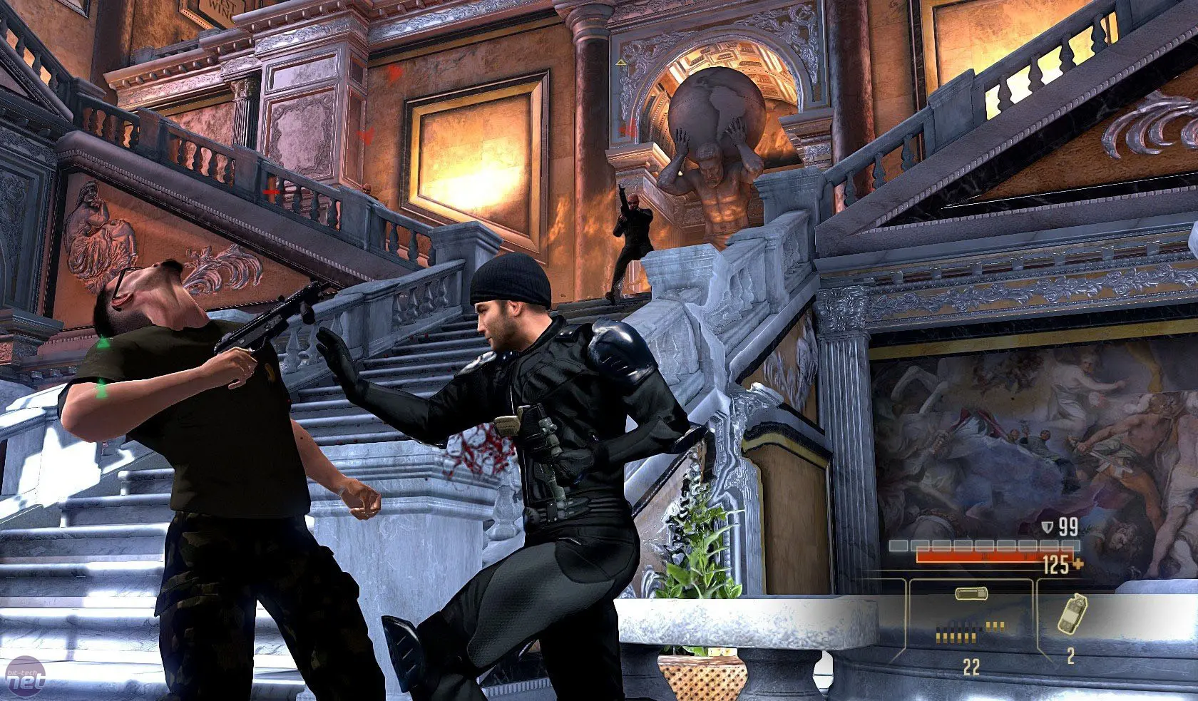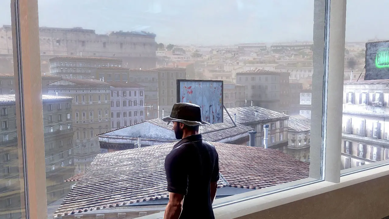 Most of the portion of the game set in Italy takes place in indoor settings in Rome (villas and hotels) with no landscape features that can be attributed to the city: the mission in the Museum of Art is set in a neoclassic context reminiscent of the rooms in the Vatican Museums (in Vatican City). The only mission that takes place in an outdoor setting catapults the user into the ruins of a building from ancient Rome: there’s no faithful reconstruction of any one real place, but features like Doric and Ionian columns and cobblestones are reminiscent of the Imperial Fora and the Palatine archaeological area.