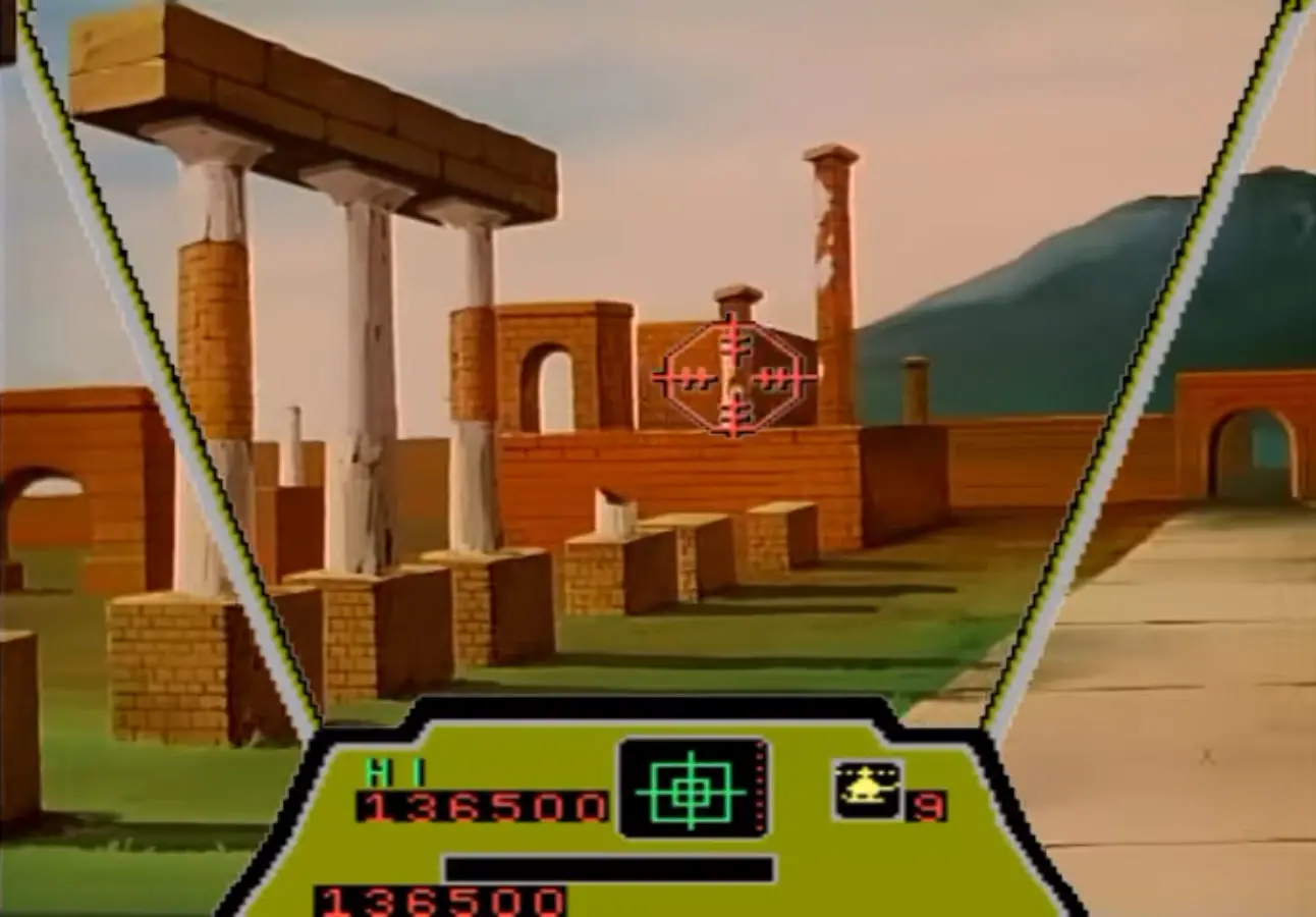 The unique nature of the game as an interactive film allowed the developers to create a quick series of sequences showcasing locations full of the distinctive features of Italy. The player starts their mission by flying over ruins inspired by those of Pompeii; they then fly towards the top of a volcano (presumably Vesuvius) to then skim over the waters of the Amalfi Coast. The fighting then continues through the skies of Rome and Venice.