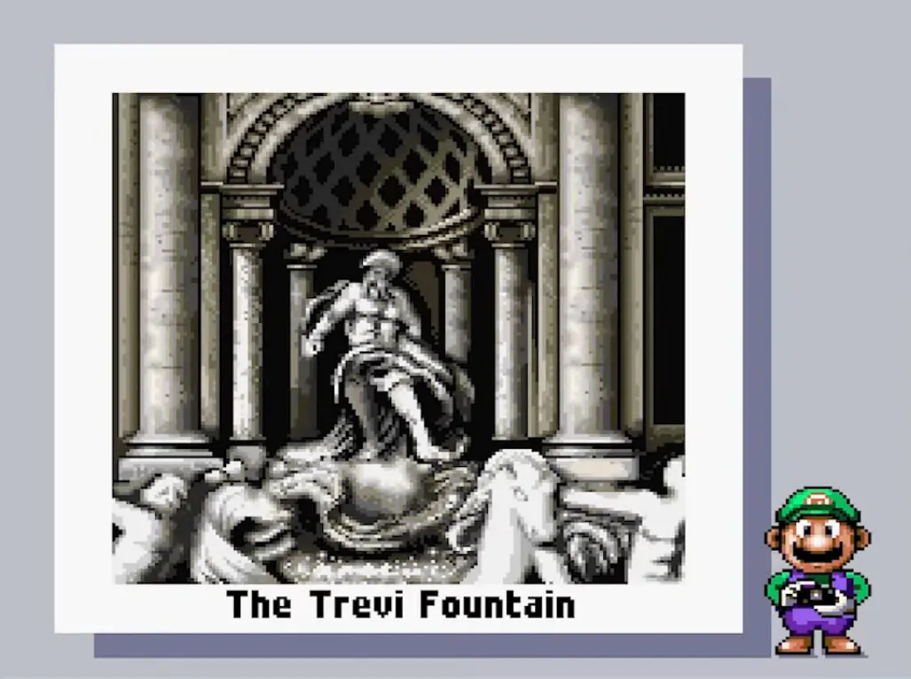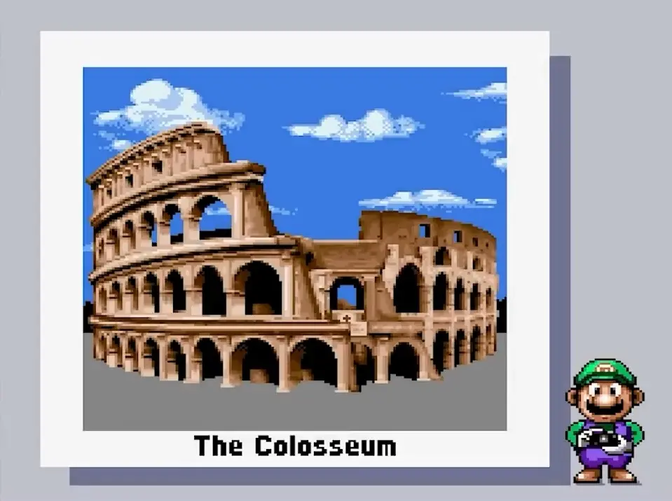 Mario is Missing! is an educational game: the player guides Luigi on a journey around the world in discovery of its most famous landmarks. Such a journey had to include Rome. The city is represented on a very basic level and there are not many features that correspond to reality. As the player makes their way through the city’s streets we see ruins in the background that look like the Imperial Fora. As he explores the capital, Luigi must find money stolen from the Trevi Fountain, a spear belonging to a gladiator at the Colosseum, and part of the Sistine Chapel.