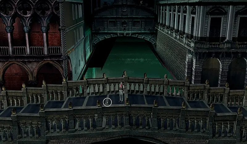 A thriller set in Italian settings with high esoteric and cabbalistic potential: Rome, Venice and Castel del Monte (Andria). The player finds themselves interacting with famous monuments with the aim of pursuing their investigation; in the tomb of Umberto I and Margherita of Savoy in the Pantheon, for example, they find the key to a secret monastery which is home to a relic of the Virgin Mary. In the Vatican, they can explore the lavishly decorated halls of the Vatican Museums, like Raphael’s Rooms. The graphics of the Italian locations are the strong point of this game: settings like Piazza San Pietro, the Pantheon, and the Bridge of Sighs, were designed paying great attention to the period and the genre, achieving a good level of realism.