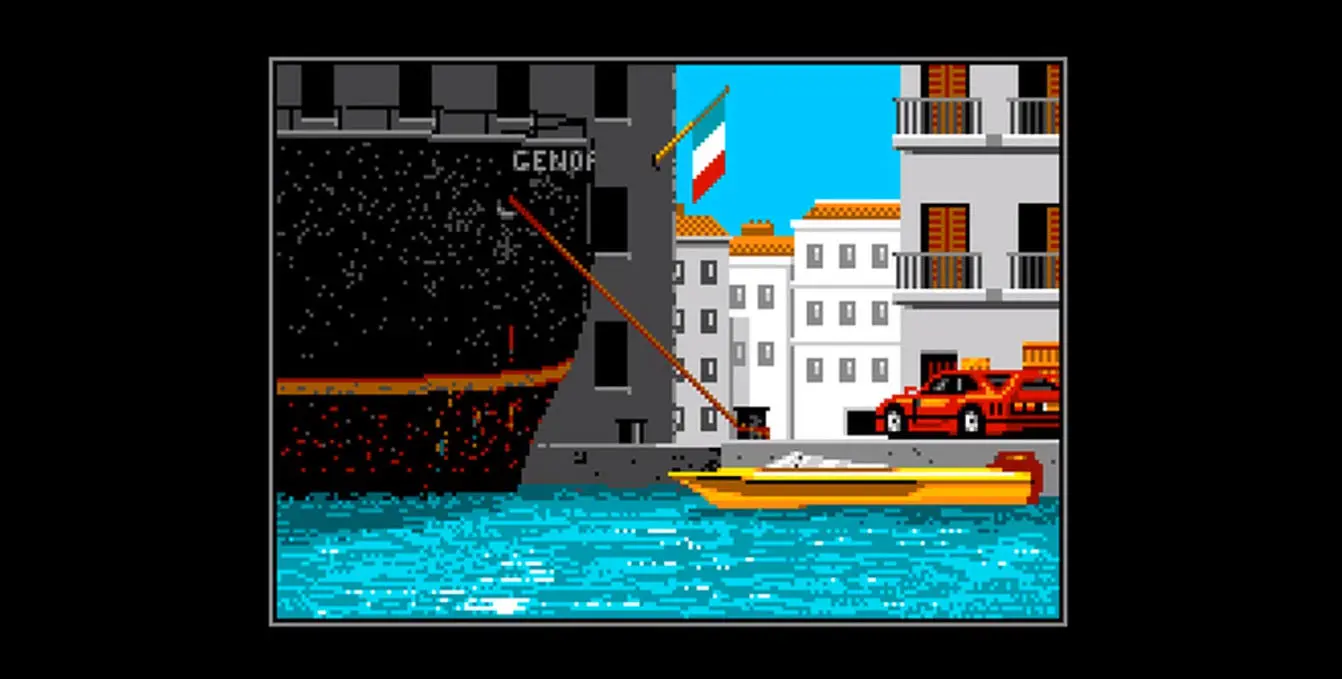 A spin-off of the famous game Out Run, a racing game produced by Sega which put the player behind the wheel of a brand new Ferrari Testarossa. In Out Run Europa, the player takes control of secret agent Simeon Kurtz, who has been assigned with transporting some precious documents from London to Bonn. “A wild race across Europe, which blends some of the elements of the original Out Run with the rousing action of Chase H.Q., with enemies attacking from all sides” (K31, September 1991). An on-the-road experience through England, France, Spain, Italy and Germany.