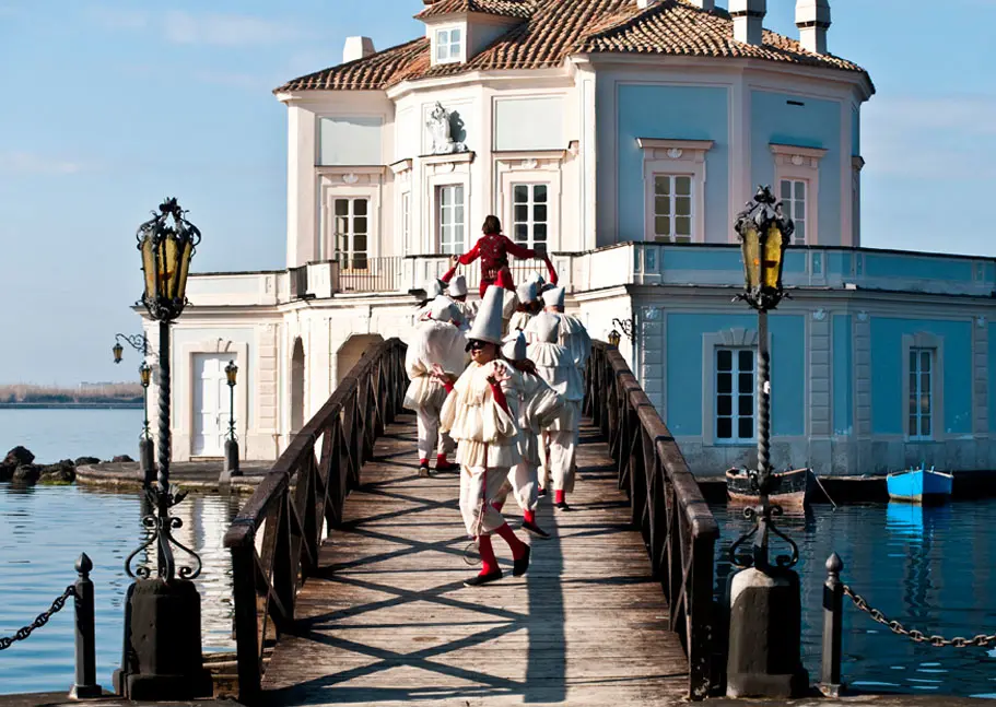 marched by lots of Pulcinellas to the Casina Vanvitelliana hunting lodge on Lake