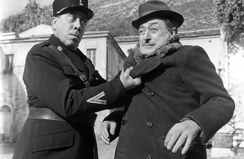 The sequence of events involving protagonists Totò and Fernandel take place in Assola, a small fictitious town on the border between Italy and France. Filming actually took far from France, more specifically in Venafro, a municipality in the province of Isernia in Molise. Many streets and squares were used to shoot this film. Ferdinand was born in the Auberge des deux frontieres in piazza Vittorio Veneto which creates problems of nationality for the French customs officer because of its position straddling the border. The mairie, town hall, in the French part of Assola where Ferdinand races to request a birth certificate to prove he is a French citizen is Palazzo del Prete di Belmonte. The town hall on the Italian side where he requests the documents to prove his Italian citizenship is the town hall, Palazzo Comunale, in Venafro. The approach into Assola, signalled by a place sign in the opening scenes of the film when Ferdinando has just arrested Giuseppe La Paglia, is in via delle Tre Cappelle.