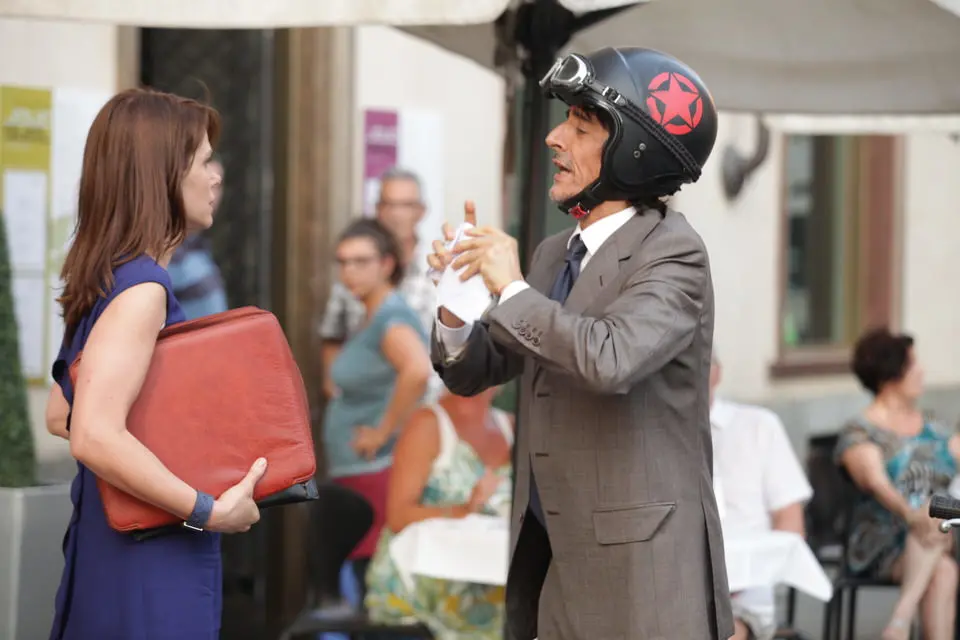 Set in Turin, the Mole Antonelliana plays a leading role in this film made for RAI (Italian State TV), offering a splendid view for the terraces of the apartments in question. Claudia and Bruno are as different as they could possibly be. An impeccably dressed, stiff career woman, Claudia prefers luxury cars, and is perfectly at ease in the company she is called upon to rescue. In contrast, shabby Bruno likes to run in the open air, through the streets and parks of Turin (capital of the region of Piedmont) such as the Parco del Valentino, with its striking Fountain dei 12 Mesi, and gets to his design studio by motorbike, driving through Piazza della Repubblica and along the long porticoes of the city.
