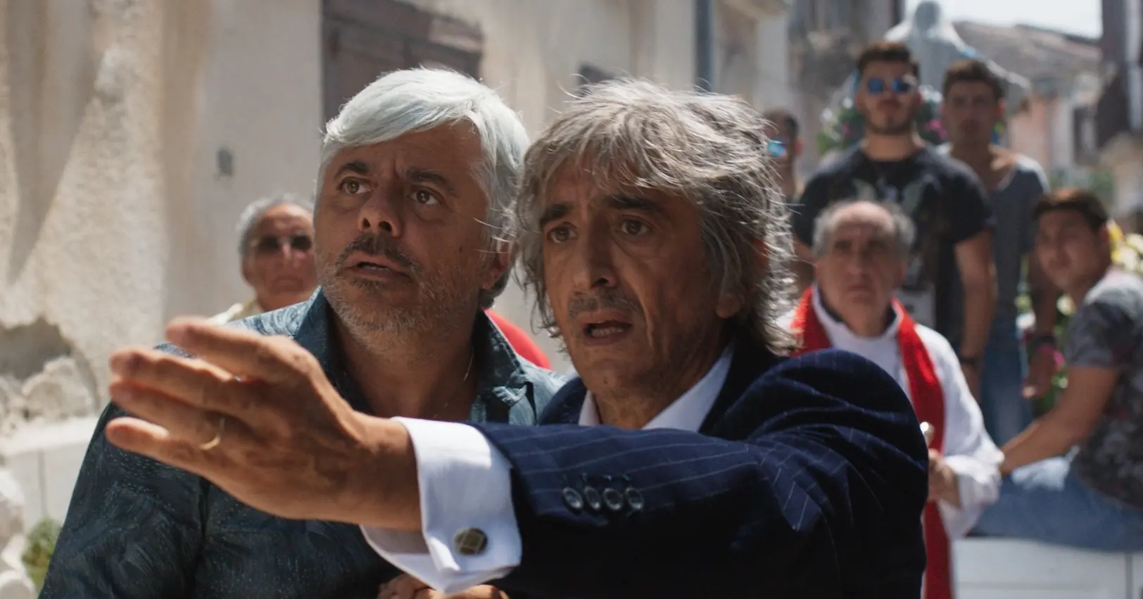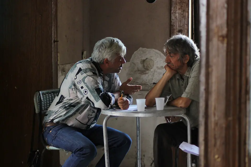 Elia is the last resident of what remains of Provvidenza, a ghost town brought to rubble by an earthquake many years before. The rest of the community have preferred to forget, to continue life elsewhere, but not him. Stubbornly he continues in his mission to keep the memory alive, collecting mementoes and fragments of the stories that filled the town when they come to the surface here and there, in the shape of abandoned objects or drawings by the children who went to the collapsed school. Provvidenza is the result of long research into the many ghost towns in Southern Italy. Eventually, the director chose Apice Vecchia, a hamlet close to Benevento that is suspended in time, abandoned after the earthquakes of 1962 and 1980. Everything in the ruins is still. A deserted square and several broken signs (Billiardi, Salone) bear witness to a time gone by, as does the large canvas, bearing a photograph of what the village was like, set up for the benefit of the tourists who are brought in by the group, by Elia’s friend Gesauldo.