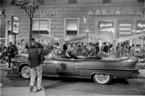 Rome, Parco degli Acquedotti: a helicopter flies over the Claudian Aqueduct carrying, suspended beneath it, a statue of Christ destined for St. Peter’s. This is the memorable opening scene of La Dolce Vita. Marcello, an unscrupulous tabloid reporter – a “paparazzo” – lives at night in the streets of fashionable Rome, amidst stars, nobles and the wealthy, always surrounded by the flashing cameras of the photographers. The heart of the city’s nightlife is Via Veneto and its locations, a total of 80 sets, were recreated in Cinecittà for many of those scenes. One night, Marcello offers to keep a bored woman company, she stops her flashy car in Piazza del Popolo, picks up a prostitute and takes her home to her house in the suburbs (the exteriors are in Tor de’ Schiavi, in the Centocelle neighbourhood).