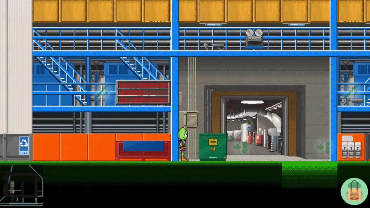 An educational game browser intended to aid the teaching of physics in schools, Gran Sasso Videogame targets kids of 14-19 and teachers. The project, financed by Ministry of Instruction, University and Research (MIUR), was produced through a collaboration between the National Laboratories of Gran Sasso (National Institute of Nuclear Physics), a scientific communications agency (formicablu srl) and a production company (IV productions), with the support of INDIRE (National Institute for Documentation Innovation Educational Research). The central figure in this 2D platform is the green alien Zot who is unwittingly catapulted into the laboratories in Gran Sasso by a space-time glitch.