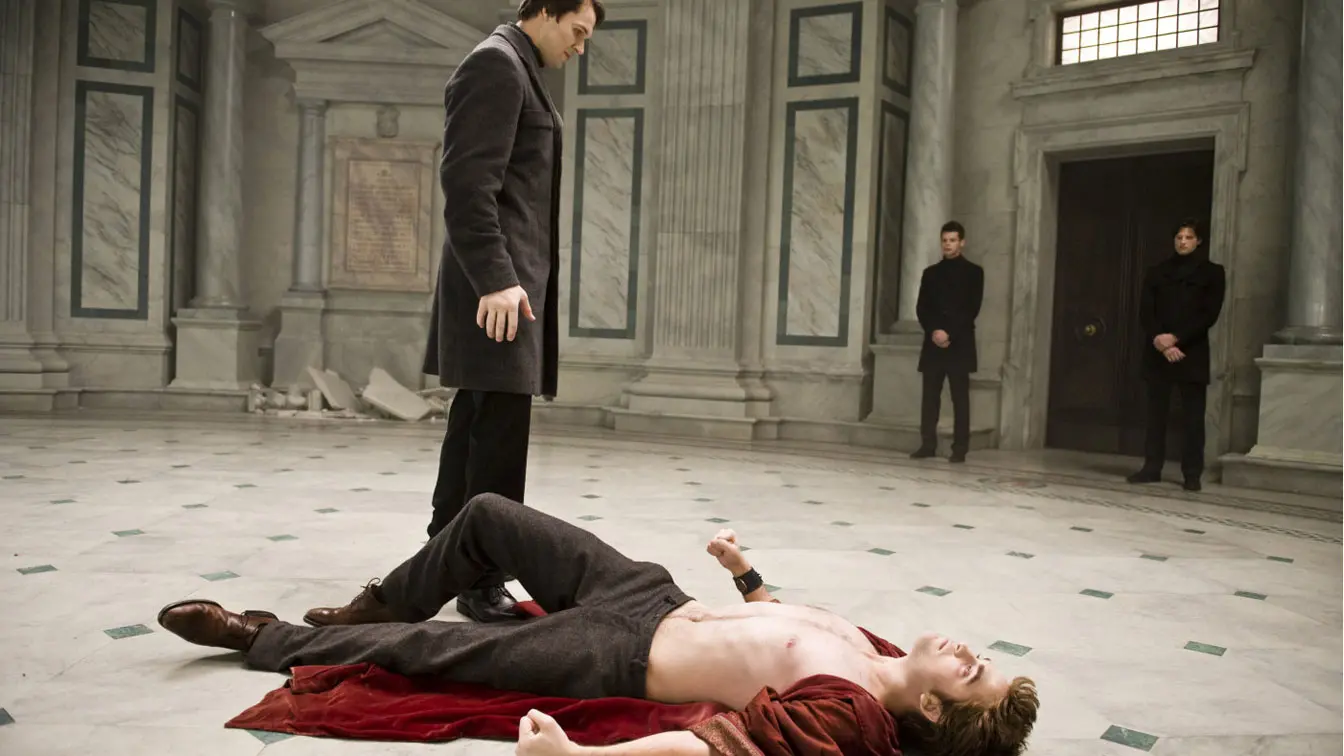 Bella manages to stop Edward in time, but they are caught inside the Palazzo by the Volturi guards. The group walks along the underground passages and tunnels of the Cantina del Redi in Palazzo Ricci to the Volturi lair for a final showdown.