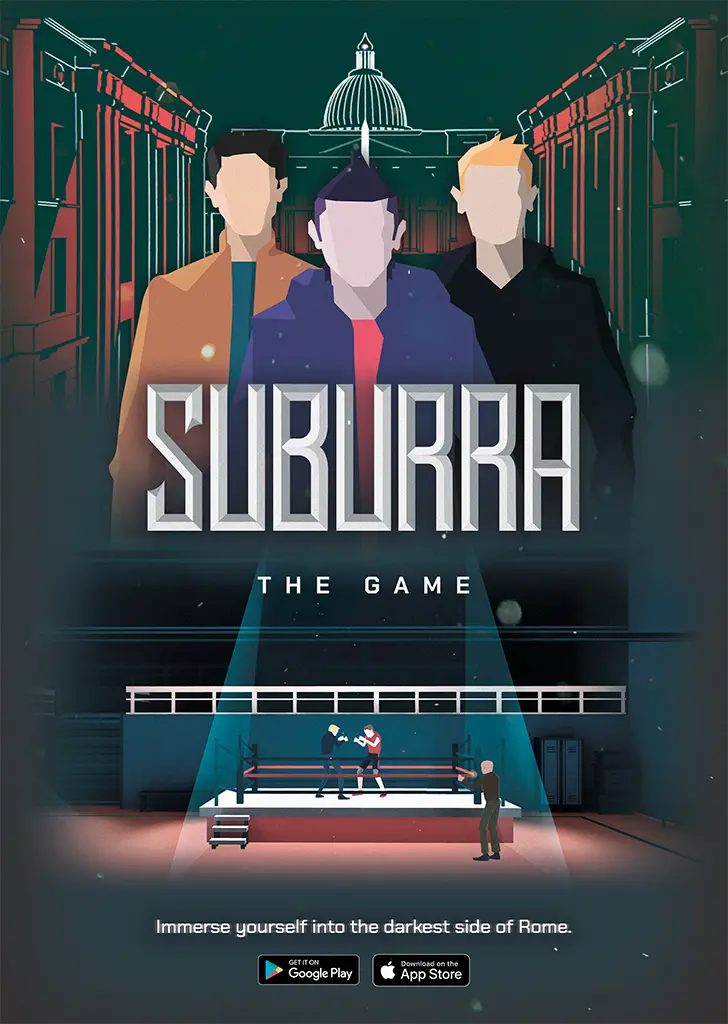 Inspired by the series distributed by Netflix, in turn a prequel of the 2015 film, Suburra: The Game is a graphic adventure that focuses on previously unknown events that take place between the seventh and eighth episodes of Season 1, featuring the main characters, Aureliano, Spadino and Lele. Having managed to take control of the territory around Ostia, the trio must handle a delicate situation: a mysterious briefcase has been stolen from an important bishop and is now in the hands of a rival clan. The player may choose which of the three characters to control over the various levels which can be won through extortion, clue gathering and violence of all kinds. During the game, the user is called upon to move in a two-dimensional space, influencing the narrative by making frequent choices that break up the dialogue sections. The graphic style of the game, both minimal and stylized, scatters the experience over sections of buildings that recall This War of Mine. At the heart of the game experience is the complex balance between personal ambition and team interests for each character: the balancing of these two driving impulses is the nexus of the choices that the player will need to make during these events.