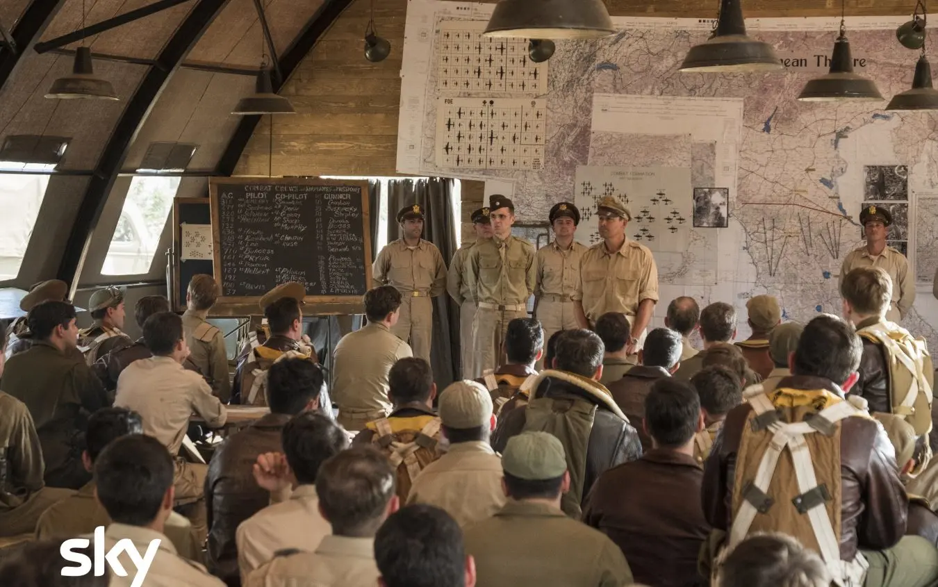 The main location of the series and departure point for the aviators’ missions is the decommissioned airport of Olbia-Venafiorita, which stands in for the American airbase of Pianosa. The camp was dressed with hangars, control towers and military tents, and enlivened by a thoroughfare of military jeeps and lorries, American fighter planes and even a spectacular night-time bombing raid. The interiors of the planes in the scenes where the aviators bomb enemy strongholds from above used flight simulators and special effects and were built at Cinecittà Studios.