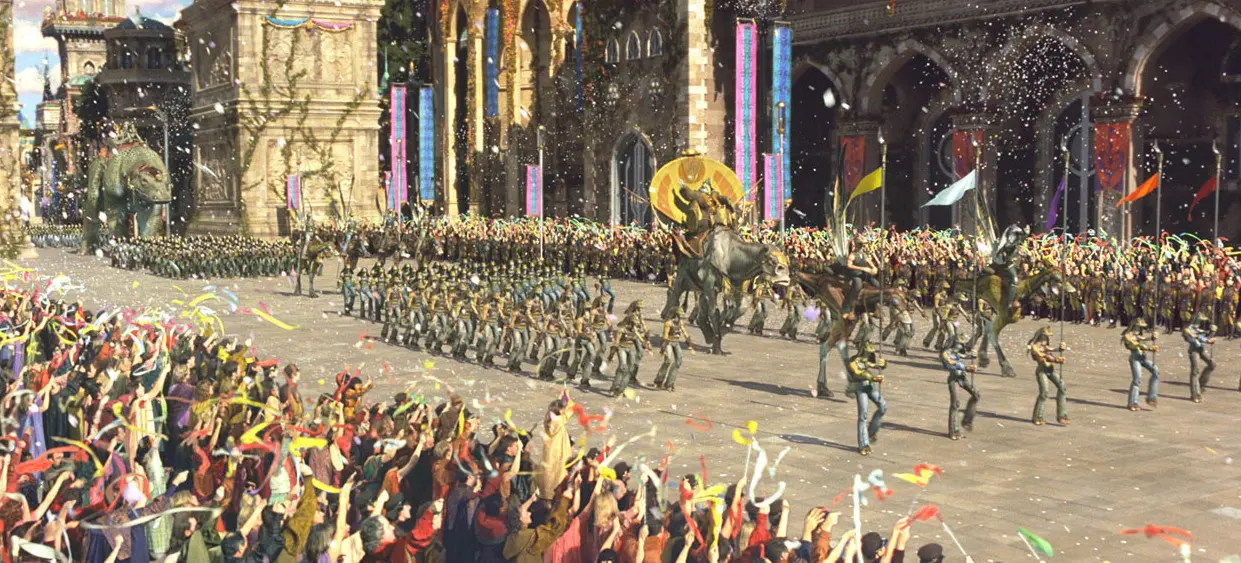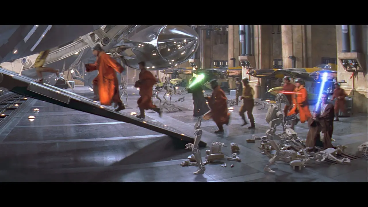 The queen and her court, now prisoners of the Federation, descend the adjacent, famous Scalone d’onore, with its principal staircase and two upper ramps with marble lions. Still at the Reggia, the vestibule is the setting for a discussion about moves against the Jedis and the Queen between a hologram of evil Darth Sidious and the Federation’s viceroys, while the large entrance gallery on the ground floor hosts a conversation between Federation leaders and the apprentice Darth Maul. Later, in the Throne Room, Queen Amidala and her army will manage to capture the Viceroy and re-establish peace on planet Naboo.