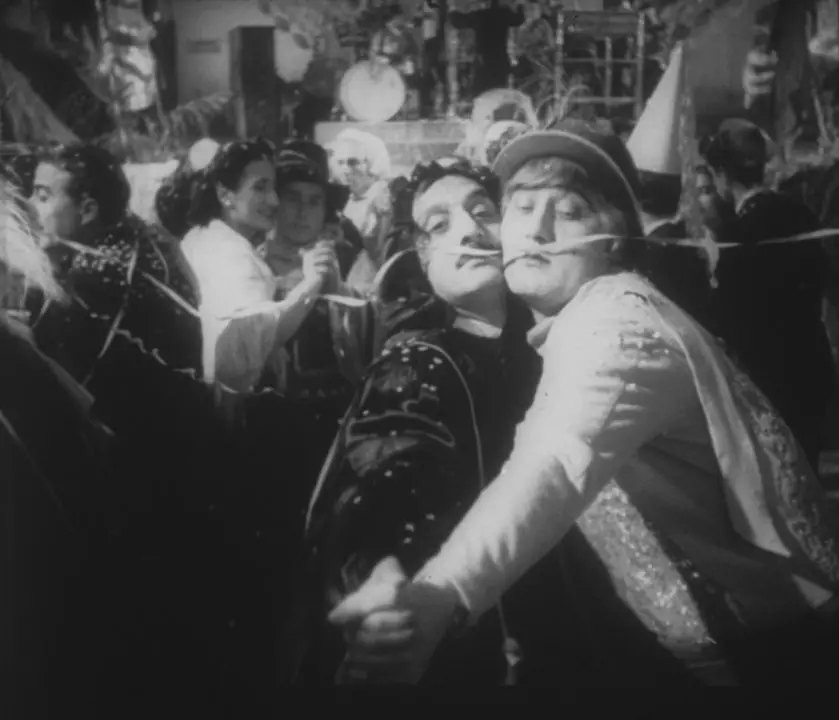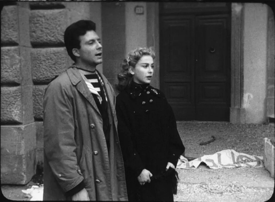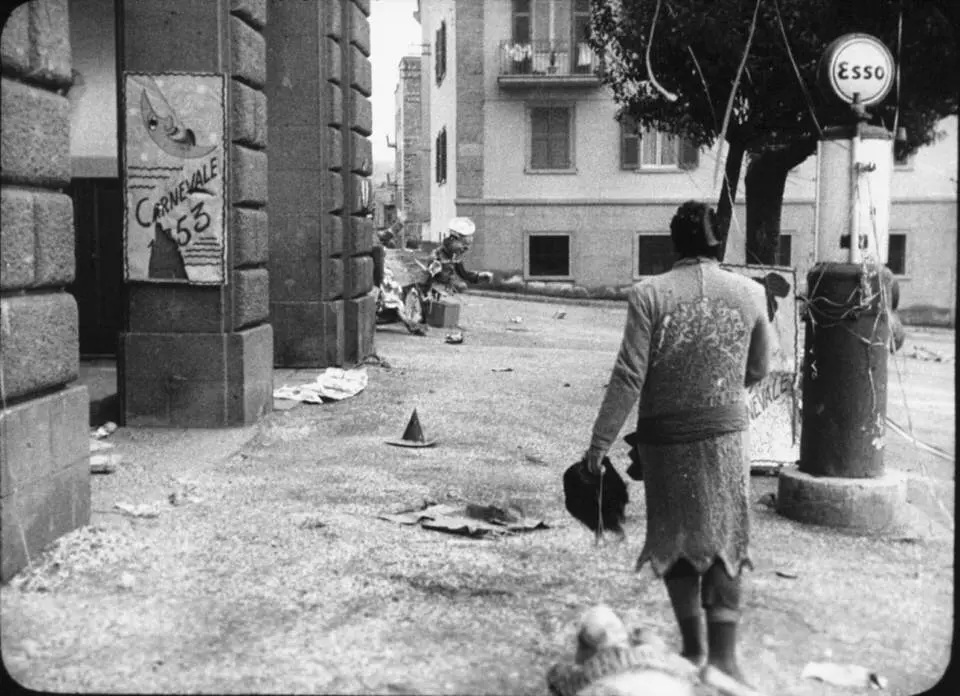 The inner streets and squares of the town are actually those of Viterbo. Piazza delle Erbe, recognisable by its 17th century fountain, is present in many scenes where the five layabouts do nothing: in one, Moraldo (Franco Interlenghi) is waiting for Fausto who has been spending time with a dancer. The Carnival scenes were shot in via Saffi (also the setting for the shop where Fausto attempts to get a job) and piazza Fontana Grande. On the morning after the party, piazza della Rocca features a mask hanging from the top of the Farnese fountain. The location also provides the exteriors of the theatre where the party was held (various scenes show Porta Fiorentina) and when a drunk and melancholy Alberto (Sordi) is assisted by Moraldo. The interiors meanwhile are Florence’s Teatro Goldoni and used several scenes later for a variety show.