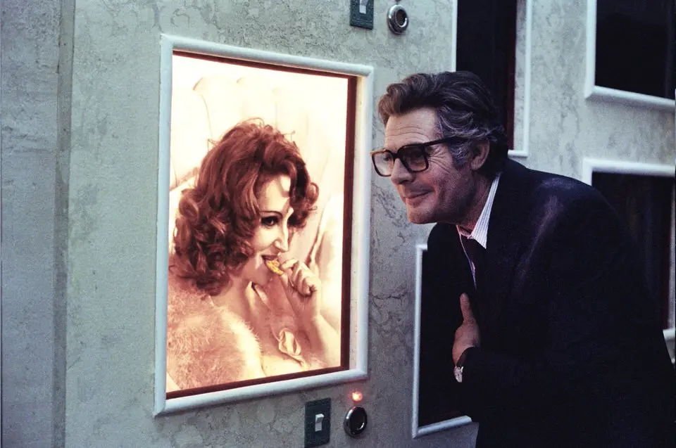 Snàporaz’s train stops at a station in the middle of the countryside and he gets off to follow a woman into the woods. This setting, in Fregene, Fiumicino (RM), is followed by a series of surreal sequences, filled with dream-like figures, shot in the soundstages of Cinecittà Studios.