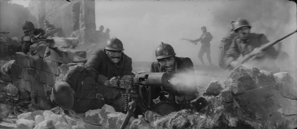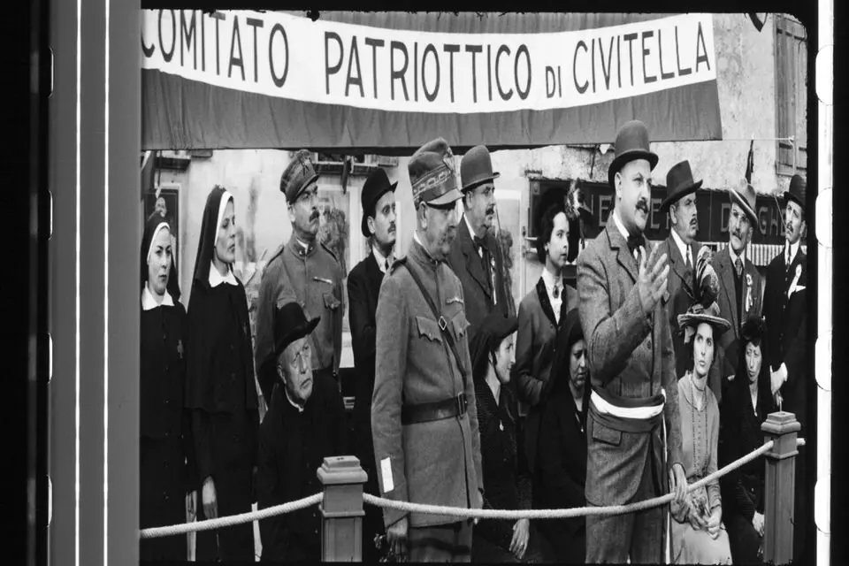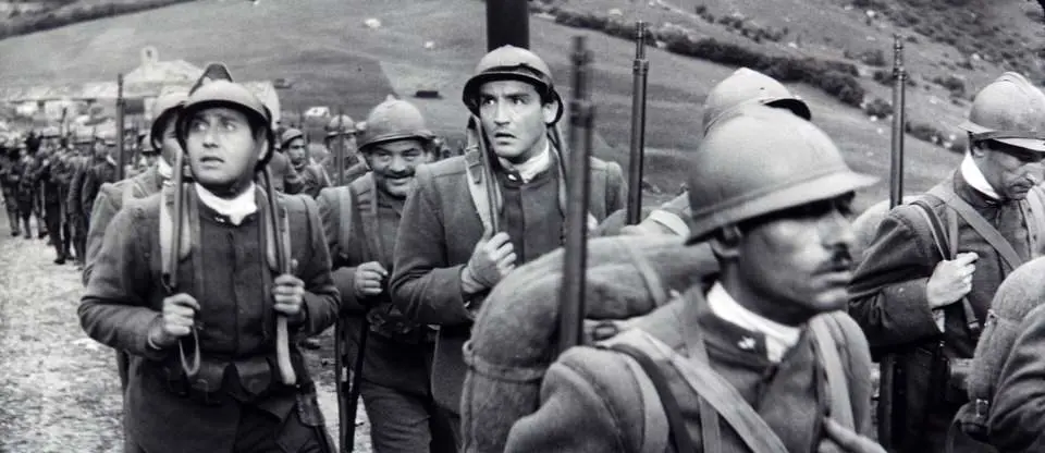 While film is set entirely in Friuli-Venezia-Giulia, this did not prevent scenes from being shot in Rome: the Military Hospital on the Celio hill serves as the barracks where the conscripts’ medical examinations take place and where Oreste (Alberto Sordi) and Giovanni (Vittorio Gassman) meet for the first time; and the train station of Roma San Pietro is where the new recruits leave for the front, also serving as the station of Civitella where Oreste and Giovanni decide to give money to the wife of a fellow soldier who is unaware that her husband is dead. Meanwhile, the so-called Castellaccio dei Monteroni in Ladispoli (RM) provides the backdrop for the dramatic final sequence and the preceding comic scene where the two main characters, who have come to deliver a message, are stopped by a guard who first yells “Stop There” and then shoots without awaiting an answer. The battlefield where the 7th Regiment manages to destroy a bridge is Galantina, hamlet of Forano (RI) while Oreste and Giovanni are stationed on guard near the Church of San Michele in San Pietro Infine (CE), where they lack the courage to shoot an Austrian solder.