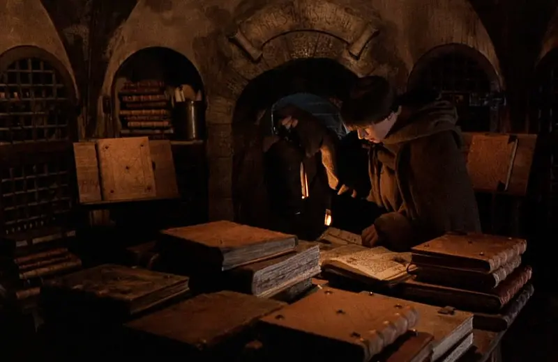 The interior scenes were filmed in Germany, at Eberbach Monastery in Eltville Am Rhein: the dormitory and the recognisable Chapter Hall with its star-shaped vaults.