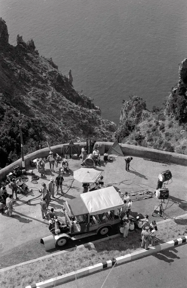Carmela is promised to Baron Prospero who waits for her outside the Collegiate Church of Santa Maria Maddalena Penitente in Atrani, clearly despising Totò: however, she is forced to ask him for help on the terrace of via Giovanni Boccaccio in Ravello. As Carmela attempts a “cure” for her malady – the remedy is to be kissed by the object of her unconscious desires near the Capo d’Orso lighthouse in Maiori – her father tries to sabotage the young man’s business, sending some of his former accomplices to piazza Duomo in Ravello to blow up Totò’s bus.