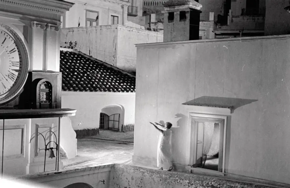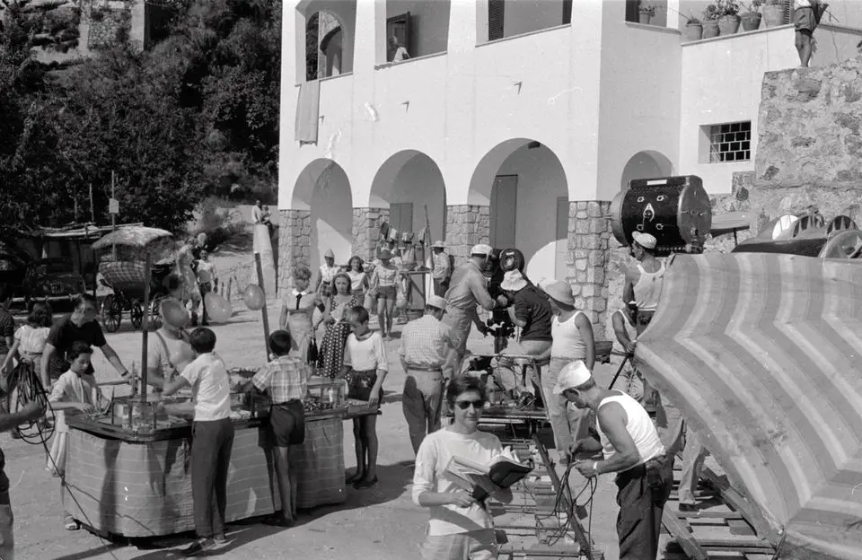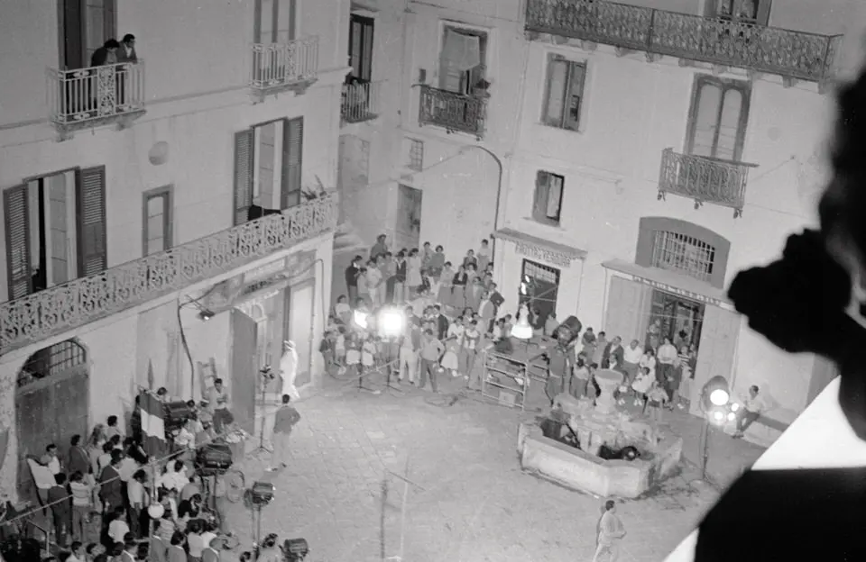 The Amalfi Coast provides the setting for Gianni Puccini’s comedy, inspired by the first verse of a Neapolitan folk song A sunnambula (The sleepwalker). The opening title sequence shows the fulcrum of the entire story: the bell tower and clock face of the Church of San Salvatore de’ Birecto in piazza Umberto I, Atrani. The clock on the ancient Palatine Chapel of Birecto has rung out the hours of daily life in the village for over 150 years, marking the passing of time with its bells; in the film, when midnight chimes, a beautiful young woman (Marisa Allasio), whom the villagers take for a ghost, walks the roofs, unawares, into her beloved’s bed. Carmela’s beloved is Totò (Nino Manfredi), a sworn enemy of her father, Don Arcangelo (Ugo D’Alessio), a former small-time crook, because he pinches his marks in piazzale dei Protontini in Amalfi, where the tourist buses set off.