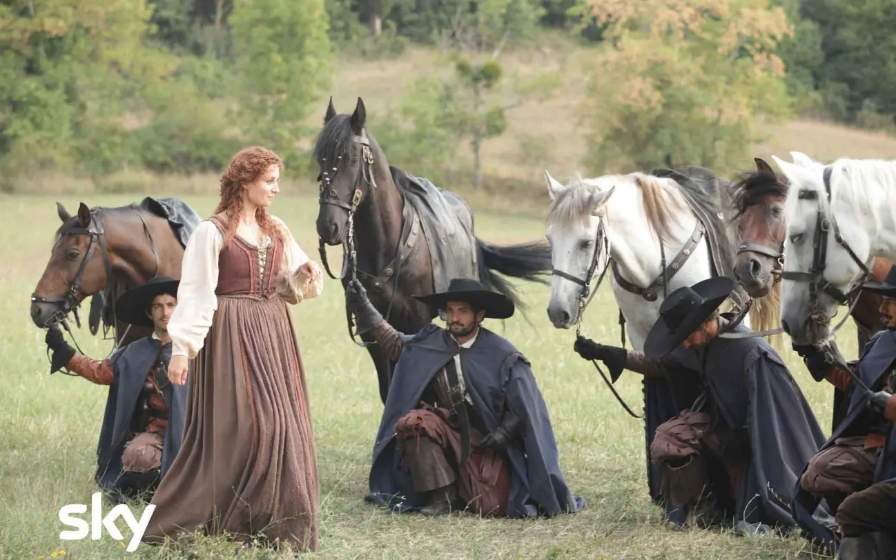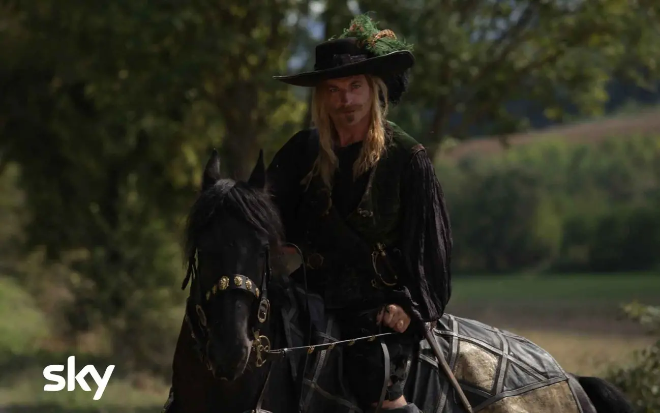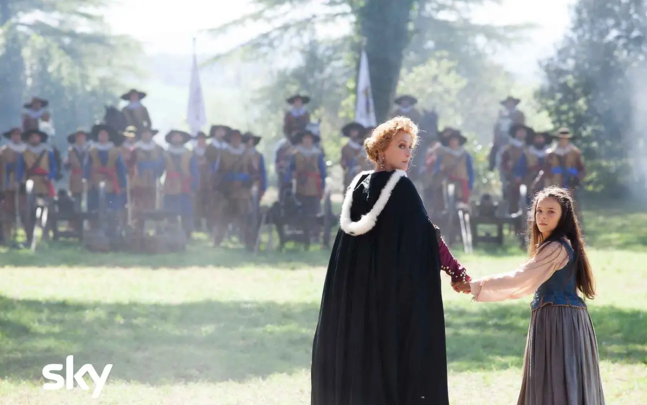 Summoned by Queen Anne of Austria (Margherita Buy), the elderly Musketeers – D’Artagnan (Pierfrancesco Favino), Porthos (Valerio Mastandrea), Athos (Rocco Papaleo) – arrive at the Royal Palace, whose rooms and exteriors are those of the 17th century Villa Doria Pamphilj in Rome.