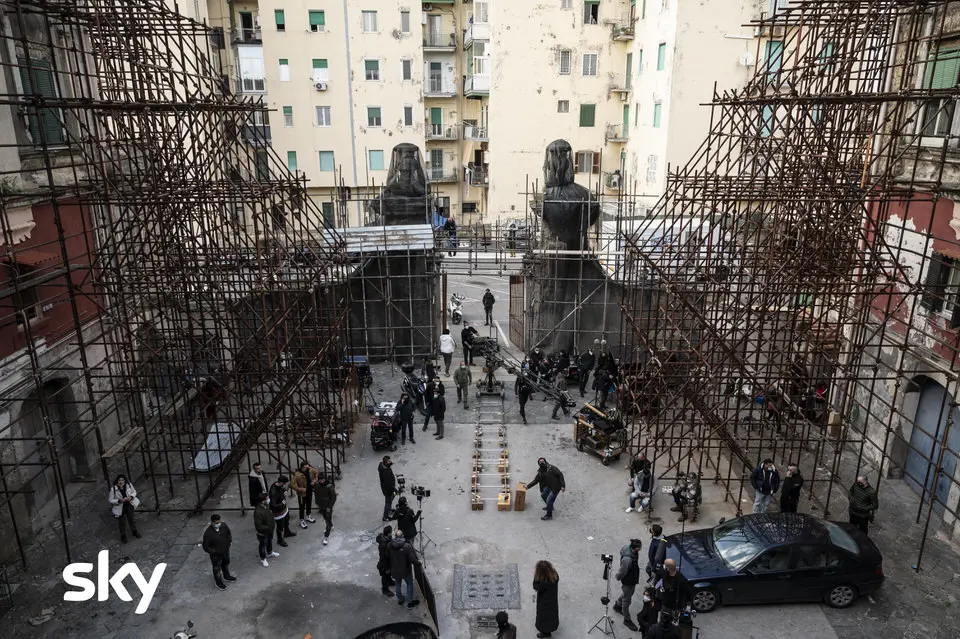 Naples is once again a leading character in this final season: alongside such familiar settings as the vele of Scampia and Secondigliano, the Central Station and nearby Centro Direzionale with its modern skyscrapers, rione Ponticelli, in the eastern part of the city, returns with the enormous and unmistakable murals of Parco Merola (also known as the Mural Park) which cover the blind building facades, contrasting the greyness of the wide swathes of surrounding cement. A work by Sicilian artists Rosk&Loste, Chi è vuluto bene, nun s'o scorda, (which features two kids playing soccer in the shirts of the Naples and Argentina teams) stands out in particular and is used as the background for scenes in different episodes. An homage to the dreams of the local community, and a clear reference to the eternal idol Maradona and the melancholic hope placed in the future generations.