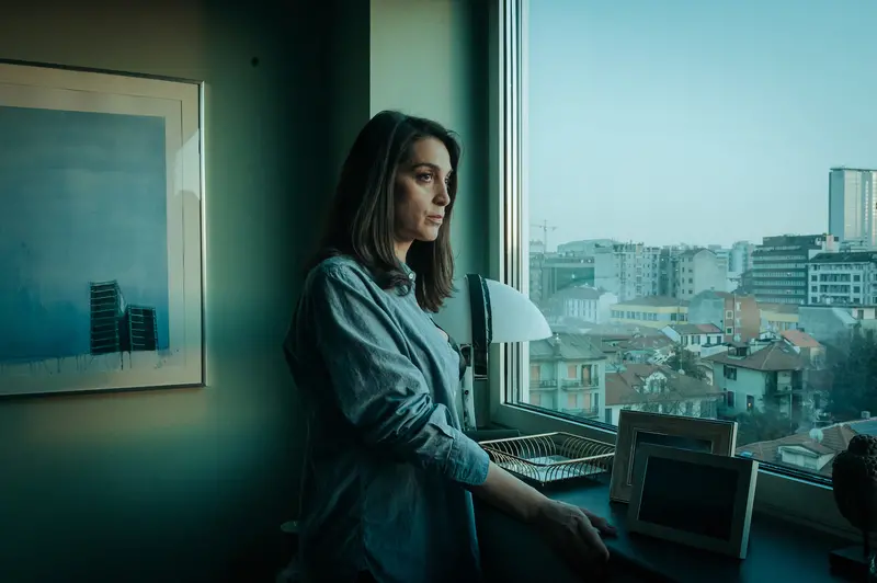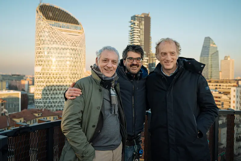 Based on the novels by Alessandro Robecchi, Questa non è una canzone d’amore and Di rabbia e di vento (published by Sellerio), the series’ main character Carlo Monterossi (Fabrizio Bentivoglio) lives in an apartment in a neighbourhood of old Milan inexorably fated to disappear. While the apartment is decorated in vintage style, the director intended the new Milan to be seen through the windows, symbolically represented by the skyscrapers on modern piazza Gae Aulenti and the futuristic green areas of the residential building Bosco Verticale. The effect suggests a fortress, surrounded by encroaching modernity whose cranes and seductive lights seem to advance further forward every day.