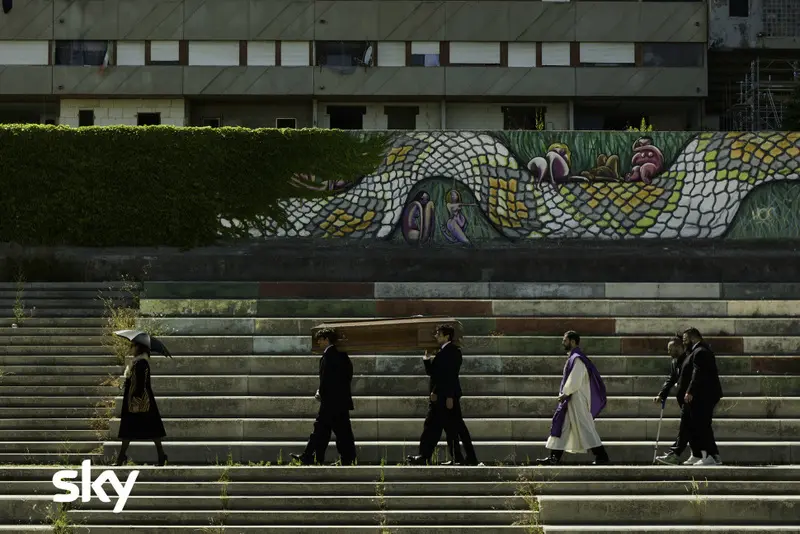 The main location in the series Christian and its symbol is the imposing concrete expanse of the Corviale“serpentone” or "snake", which was merged with images of the Vigne Nuove residential complex. Designed in the Seventies, the large “snake” symbolizes a building utopia but today stands in isolation on the edges of the city of Rome. The enormous building was intended to incorporate a series of services for citizens, as a different way of conceiving the suburbs. However, the project failed - the works were delayed and the spaces, in particular those reserved for services, were occupied illegally - making the Corviale a symbol of the degradation and dilapidation of the Roman suburbs. In addition to the imposing and menacing concrete of the Corviale, the series also features streets in the elegant Parioli district and the bright gardens of the Celio hill.