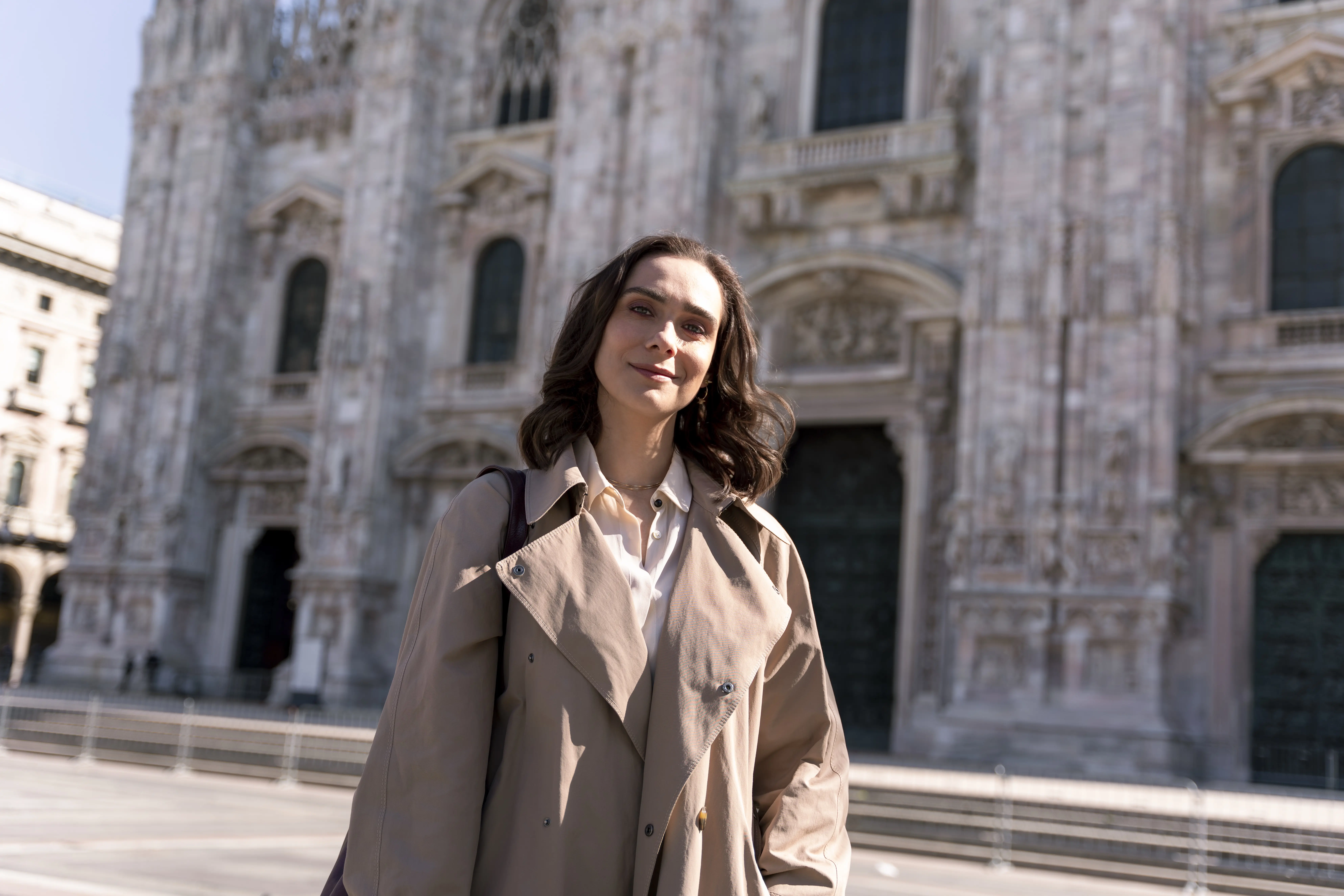 Carlo (Michele Riondino) holds his creative writing classes outside the university walls in parco Sempione. Margherita (Lucrezia Guidone) works between San Babila and the Cathedral. She watches the city’s movements, through its trams, from the elegant estate agency where she works.