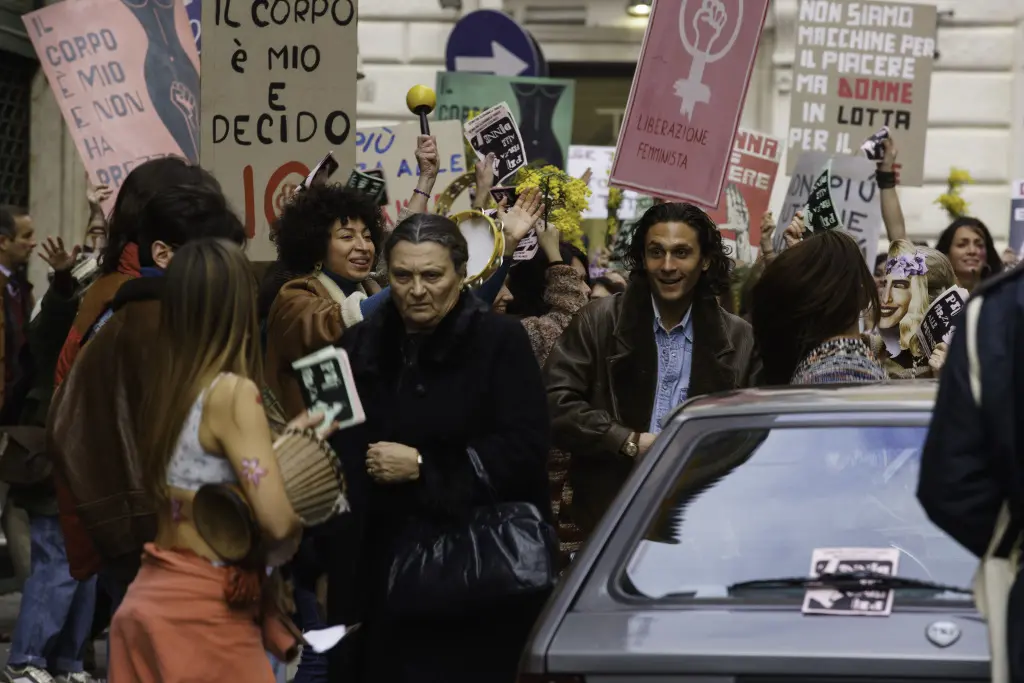 The events that involve her take place mostly in Milan: locations include piazza Duomo, the exterior of the city’s Gothic cathedral clearly visible; the historic centre, setting for a feminist protest; and the Palazzo di Giustizia on corso di Porta Vittoria, where the Barone family “parades” before going to interrogate Alice’s father’s presumed lover who works in a nightclub in Milan. Many interiors were also used for the Barone family homes, Alice’s father’s prison and the fashionable night clubs filled with the politicians and yuppies of the time. The 1980s setting has been perfectly recreated: Milan is a city of fast-food restaurants, women with their hair in rollers under salon dryers, a funfair, streets lined with enormous advertising hoardings, and neon lights. “Milano da bere” as it was known at the time, was in full economic expansion with bright colours and fashionable clubs, pulsating with the glamour of a lively, fun, slightly superficial but modern and dynamic city. The exact opposite of the working-class town where Alice lives with her mother, which is presented as an anonymous Italian province, its simple, peaceful style in neutral tones far from the exhilarating Lombard capital.