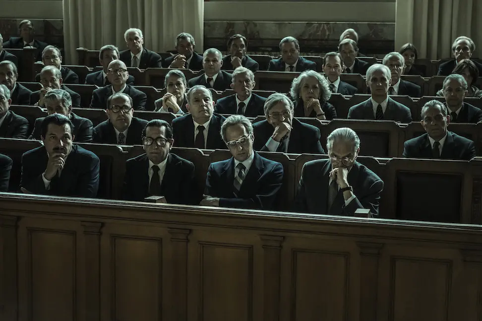 While his 2003 film imagined what happened during Moro’s imprisonment and the perspective of the terrorists, here Bellocchio’s intent is to reconstruct the events that took place outside that hideout, in the key places of the negotiation: the Quirinale, Ministry of the Interior, Vatican (Palazzo Chigi in Ariccia was used for the interiors of the Palazzo Apostolico). In large-scale works, a vast range of interiors were recreated at Cinecittà Studios and the streets and squares of Rome’s historical centre were taken back to 1978. A bar was redressed in piazza Santa Maria in Trastevere and an ice cream parlour installed, along with a yellow telephone cabin typical of the early 1980s, a taxi rank (the square was accessible to cars at the time), and campaign posters for the Communist Party and Lotta Continua: here the terrorists try to mingle with the crowds as they discuss Moro’s fate.