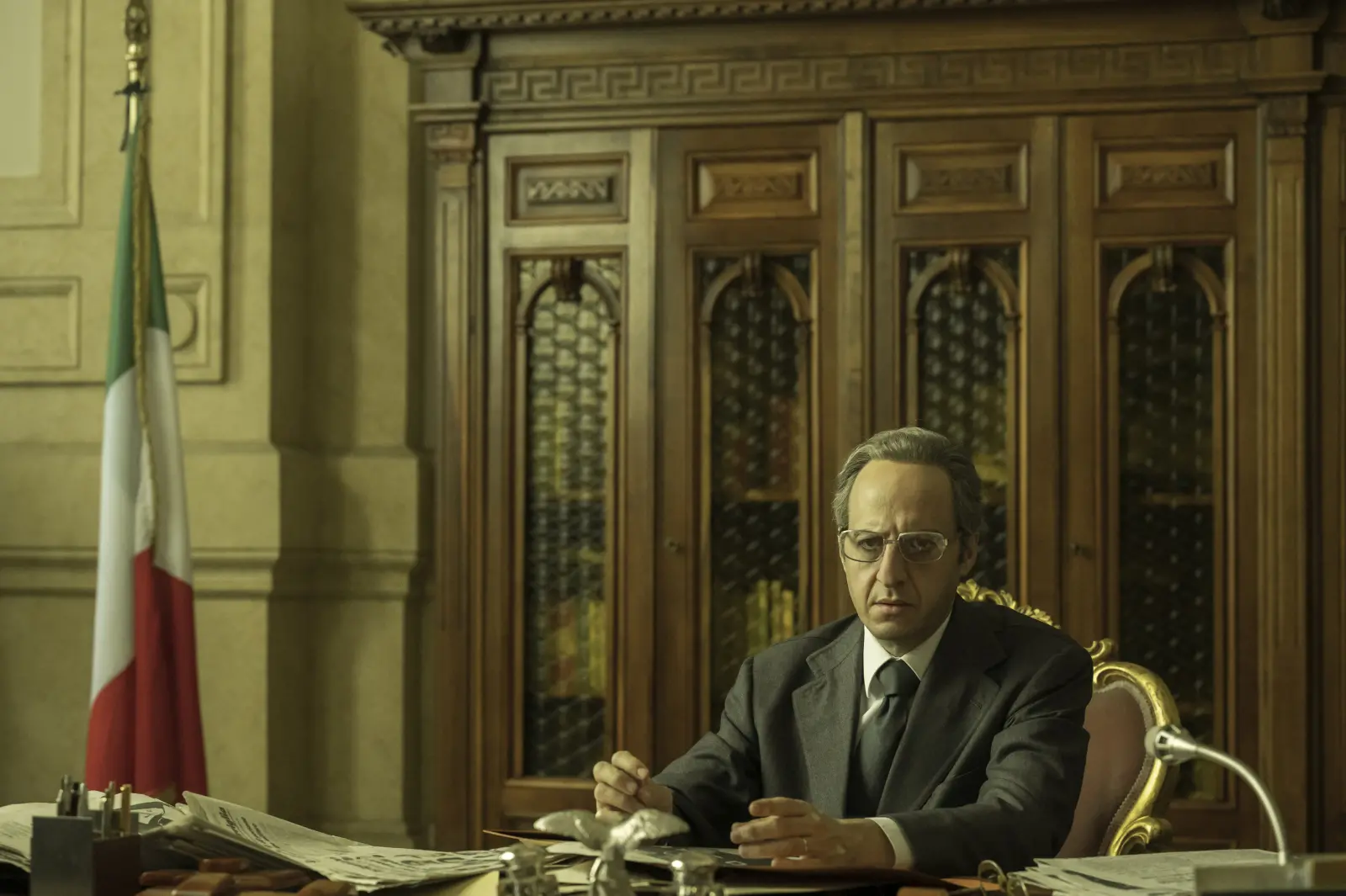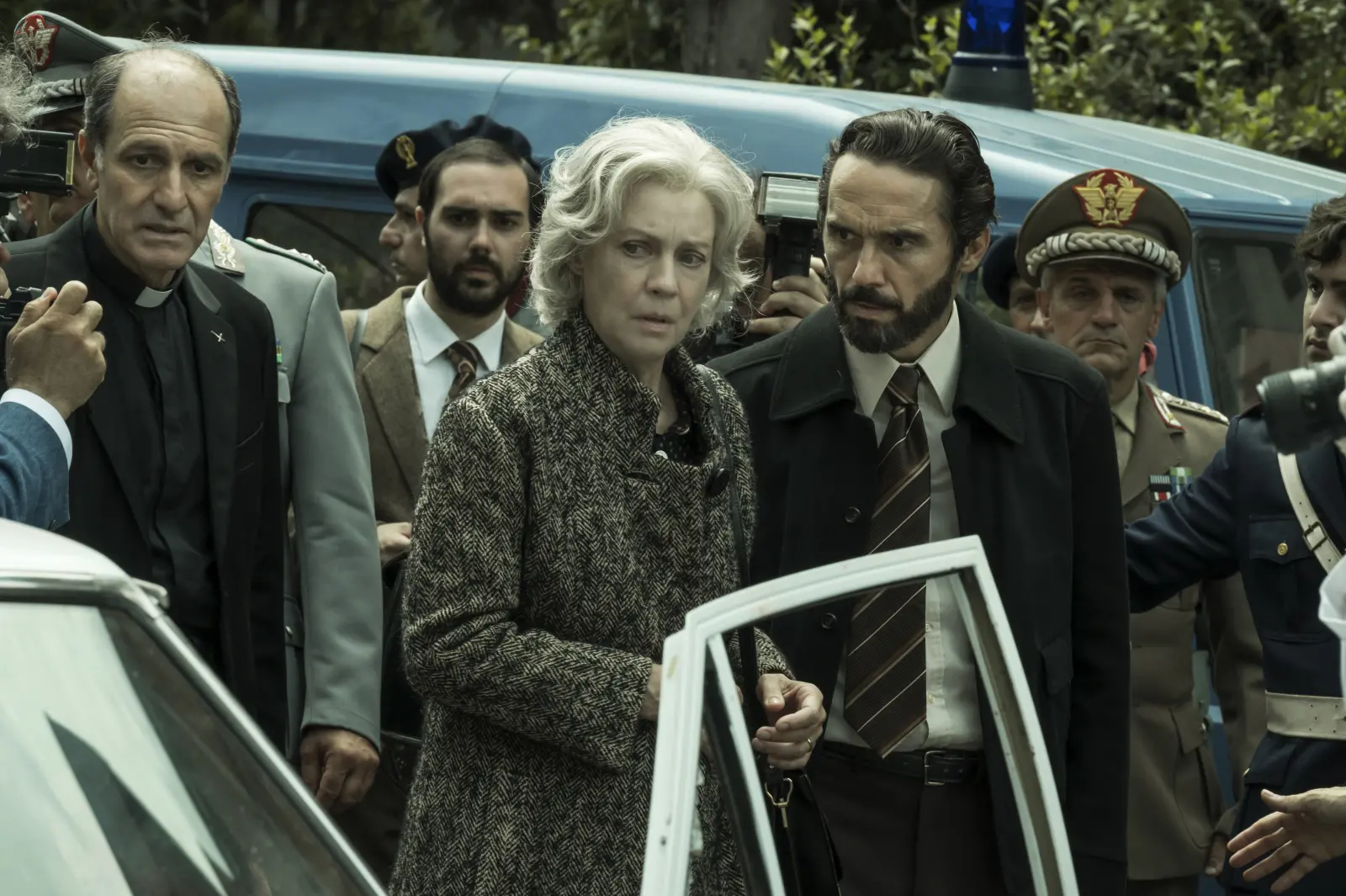 With Esterno Notte Marco Bellocchio returns to the 55-day imprisonment of the kidnapped Christian Democrat leader Aldo Moro after his Buongiorno, Notte. The tv series, which retraces the slaughter of via Fani and the kidnap and murder of the politician in 1978, was shot mostly in the places where these events, which have affected Italy’s history so profoundly, actually happened. Reproduction of the kidnap sequence of 16 March 1978 where Moro’s bodyguards lost their lives paid attention to the smallest details: Moro’s departure from home in the blue Fiat 130 towncar; arrival at the corner of via Stresa where the flower seller’s van was unusually absent (the terrorists punctured the tyres to stop him occupying his usual spot); the gunshots that felled the bodyguards; and the seizing of Moro, his glasses and the newspaper he was reading only moments below left on the back seat of the car.