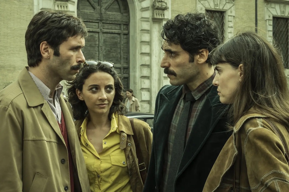 Other areas of Rome were also used to reconstruct these events. Including the road that links the Balduina-Monte Mario neighbourhood to piazzale Clodio, where graffiti, referring to the working-class struggle that was a key issue in the 1970s, was scrawled on the walls to create a more realistic context. The monument to Giuseppe Mazzini, in Circus Maximus, is a silent witness to a nocturnal negotiation between Moro and Enrico Berlinguer, Communist Party leader: the two politicians are seated in a car while their respective bodyguards discuss football. The area of the Colosseum and the Fori are used for demonstrations against terrorism. The terrorist Adriana Faranda (Daniela Marra) abandons her daughter outside a school in piazza Damiano Sauli, in the Garbatella neighbourhood, to dedicate herself entirely to the armed struggle. The shoreline of Ostia is the setting for a scene where the terrorists shoot at the sea as if reenergizing themselves before kidnapping Moro. A Red Brigade communique is left in an orange envelope in the porta Pia underpass. On an inner side area in Termini station is the cabin where one of the terrorists makes a last call to Eleonora Moro.