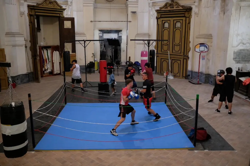 At his mother’s funeral, Felice meets Don Luigi (Francesco Di Leva), a charismatic priest at the Basilica di Santa Maria della Sanità, known in the area as San Vincenzo alla Sanità. Many young people cluster around the priest – the only alternative in the neighbourhood to the criminal organization headed by Oreste 'o malomm Spasiano – practising boxing, playing music and dreaming of a new life. Among them is Adele, who takes Felice to the catacombs of San Gennaro and to an ancient fresco of an African woman opposite San Gaudioso.