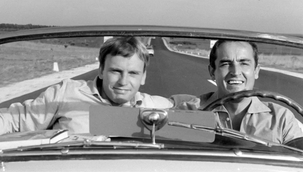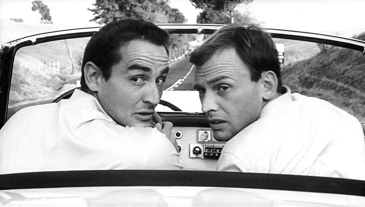 Ettore Scola’s film is a hymn to the desire for summer escapes: as exemplified by the behaviour of Bruno Cortona (Vittorio Gassman) and his new friend Roberto Mariani (Jean-Louis Trintignant), apparently the last living being in Rome on a burning hot Ferragosto holiday. The exuberant 30-year-old easily convinces the student to get into his Lancia Aurelia B24 cabriolet which he drives very fast.