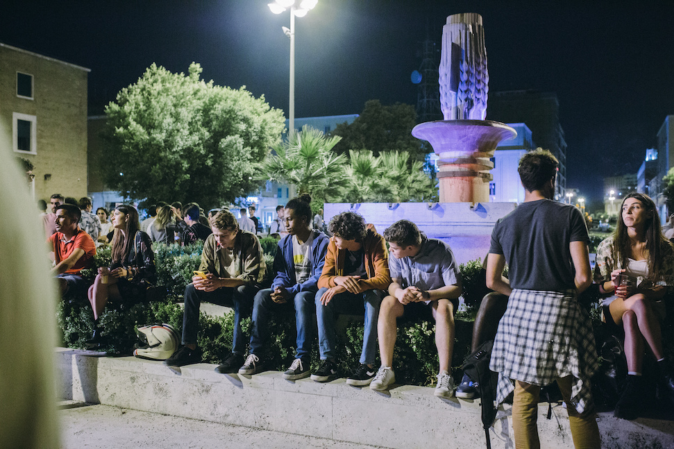 It is evening and the twins, Marco and Andrea (both played by Mattia Carrano), are preparing to celebrate their birthday: their friends are gathered in a crowded piazza della Libertà, one of the meeting points in Latina, dominated by a central fountain by Oriolo Frezzotti (1934) which recreates sheafs of grain. This is the opening of Prisma, a Prime Video series that delves into the lives of contemporary adolescents as they deal with the fears, challenges, self-discovery and awareness that demonstrate, as the story unwinds, how unique they all are.