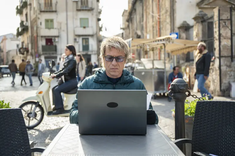 Palermo is the main setting and location, seen several times from above, from piazza Giulio Cesare, beyond the monumental entrance of via Roma: with mount Pellegrino in the background. The transfer of the mafioso Cataldo Palamita (Fabrizio Ferracane), arrested by Leonarda, Nino’s sister (Selene Caramazza), offers the opportunity to admire an external glimpse of the Cathedral of Maria Santissima Assunta: the van stops suddenly a little while later in piazza Vittorio Veneto, outside Nicolò Turrisi School, in the Capo neighbourhood. Palermo is also present with its shoreline, which Luvi rides down on an electric scooter, heading for the emergency room, when she receives a call from her business partner reminding her of a hearing. In front of her is the harbour, mount Pellegrino looming above, apparently protective of the city.