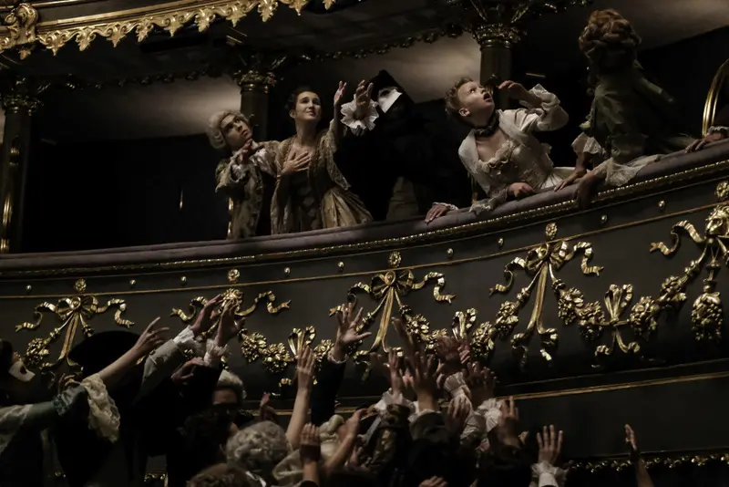 Many of the musical scenes took place inside the Teatro Sociale in Como, employing 150 crew, actors, singers and musicians.