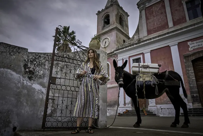 One of the key locations in the film is the Church of St. Bartholomew, with its characteristic red façade, in the Piscità area. The building, which dates to the 18th century, was built by the island’s population; the interiors are also shown: 19th century stuccowork and a cross vault cupola studded with blue and gold stars.