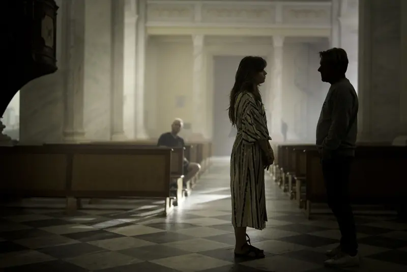 After an eventful night, Sara bumps into Jens (Christian Hillborg), a charismatic Danish guru who brings her into his retreat group. This includes neurotic millionaire Harold (Tim McInnerny) and taciturn Hans (Peter Embrechts). With a backdrop of alleys, white island houses, black sand beaches and the incandescent force of the volcano, Jens helps all the participants face their personal demons through exercises and role play.
