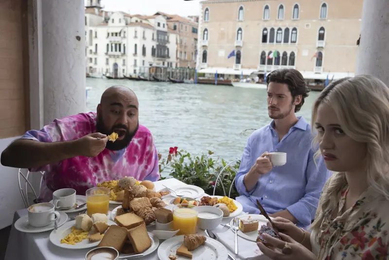 Their dream trip, however, becomes a nightmare thanks to the hulking presence of Bav (Asim Chaudhry), Adam’s exuberant friend. The lagoon city is the main backdrop for the trio’s adventures, featuring some very iconic places: piazza San Marco, canal Grande and the bridge of Sighs, and corners of campo San Giovanni e Paolo, the isola di San Giorgio and campo San Vio. There are also the historical and artistic marvels in the Scuola Grande di San Rocco and Conservatorio Benedetto Marcello.