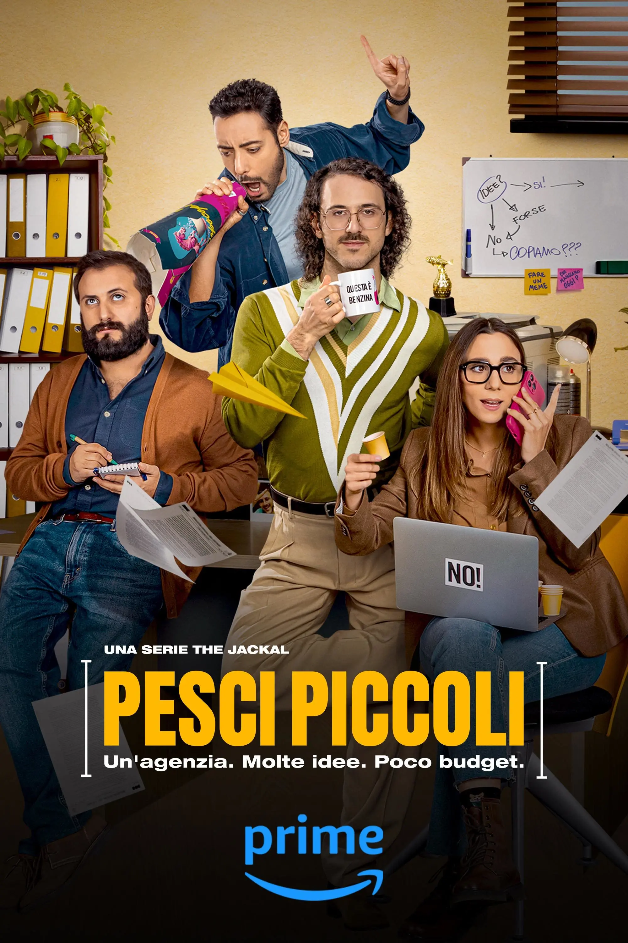 Pesci piccoli – Un'agenzia. Molte idee. Poco budget (Small fish – An agency. Lots of ideas. Small budgets) is the first comedy series conceived, produced and interpreted by the content factory The Jackal. Fabio Balsamo, Gianluca Fru, Aurora Leone and Ciro Priello are friends and colleagues at a social communications agency, busy with unsuccessful provincial brands, tragicomic influencers and low-budget campaigns in the digital world. Office life, however, also features flirtations and group rituals. The arrival of a new manager at the agency, demoted and determined to prove her worth, brings a wave of innovation. They will all learn that you don't need millions of followers if you have something more valuable: the right friends.