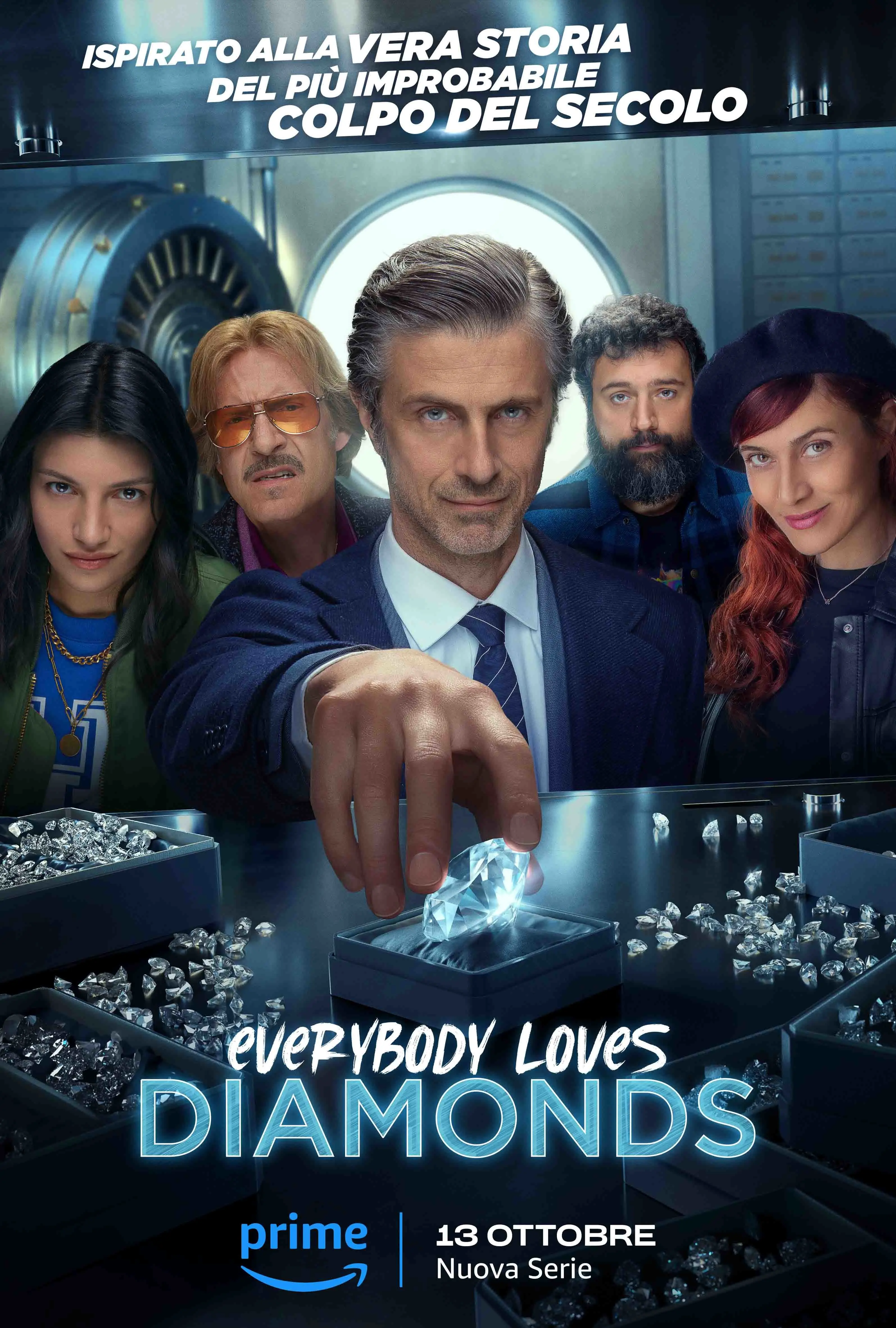 Directed by Gianluca Maria Tavarelli, Everybody Loves Diamonds is an 8-episode heist series with comedy twists inspired by the true story of the 2003 "Antwerp coup", defined by the international media as "the largest diamond theft in the world".