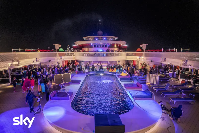 The story is set on a cruise ship sailing the Mediterranean Sea. The interiors of the ship were recreated on a soundstage in Rome (the exteriors are those of the Valiant Lady). Some exterior scenes were filmed in Civitavecchiaand its port and in Senegal.