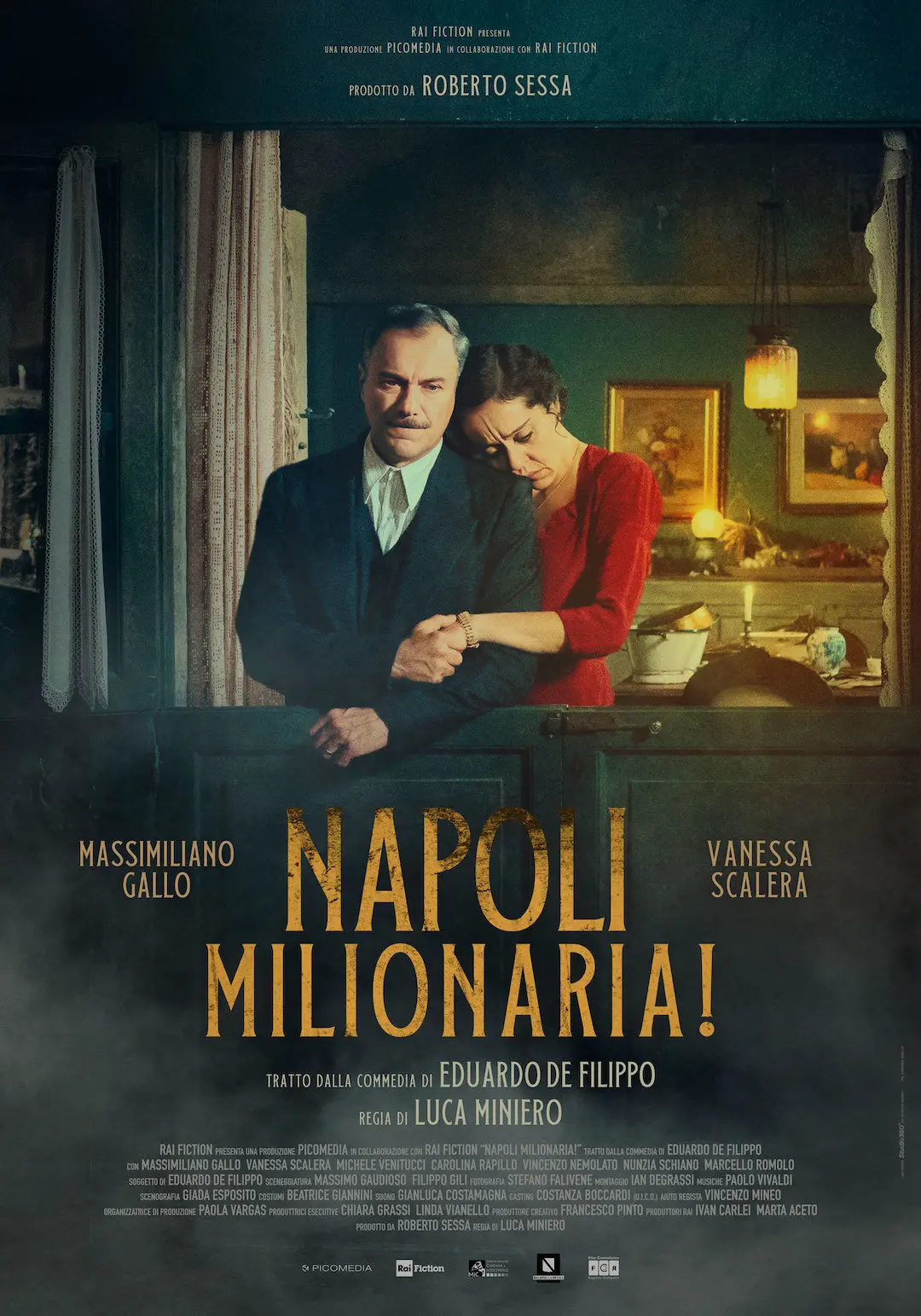 Napoli milionaria!, TV film directed by Luca Miniero, is based on the play by Eduardo De Filippo. First presented in the immediate post-war period at the San Carlo Theatre in Naples, the comedy demonstrates all the courage and greatness of its creator who confronted the wounded city with the moral consequences of the recent conflict.