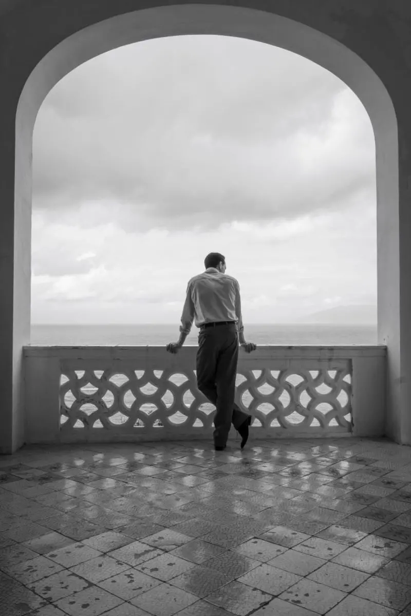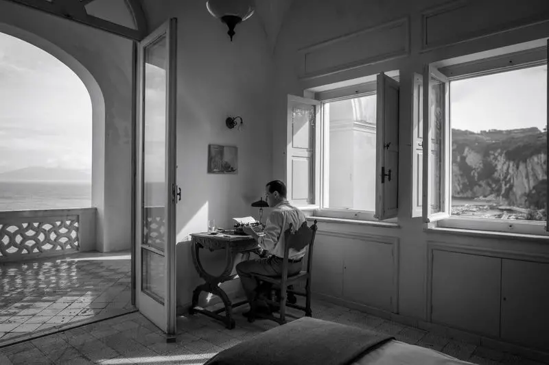 The series also features the islands of the Campania archipelago, in particular Villa Torricella (Capri), a sumptuous residence overlooking the bay of Marina Grande. The small circular temple with a panoramic view where Ripley talks with Dickie (Johnny Flynn) is part of the villa fictionally located in Atrani. The small village makes a fine show of itself. On his arrival in Italy from New York, Ripley travels the dangerous journey along the hairpin bends of the Amalfi coast overlooking the sea on an old bus which finally reaches destination beneath the monumental Collegiate Church of Santa Maria Maddalena Penitente, dominating the gulf of Salerno. Tom's efforts are not over: to reach Dickie Greenleaf, his objective, he has to climb an infinite number of steps at the end of which, however, he can enjoy a priceless view of infinity.